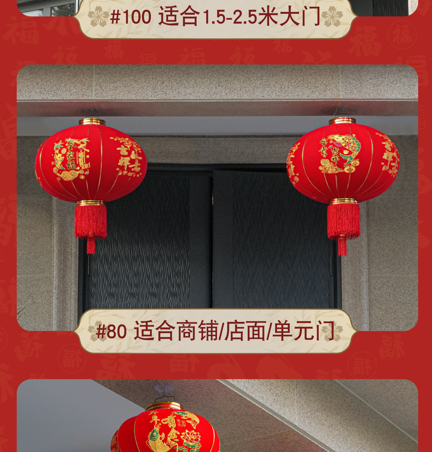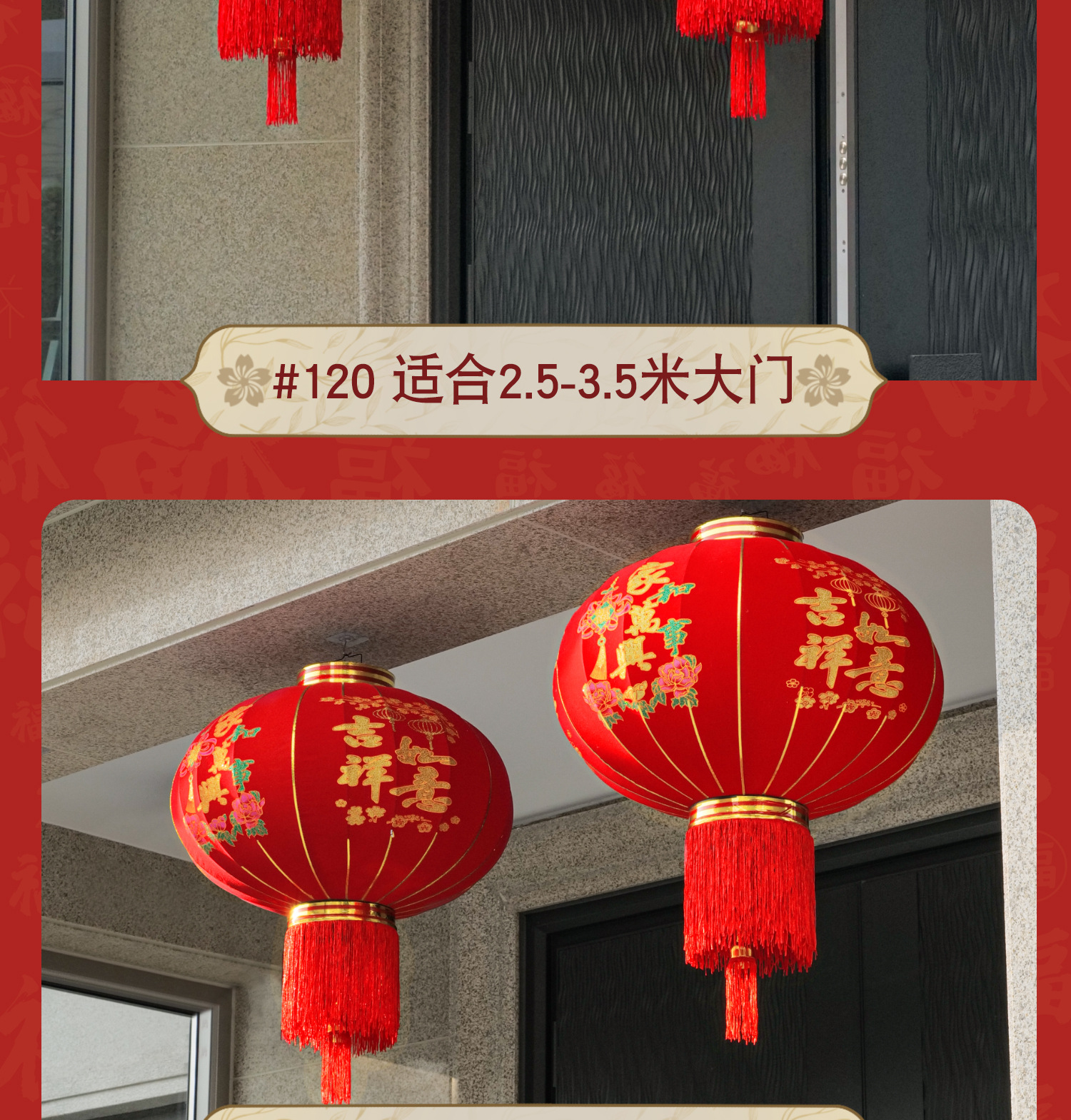 새해 장식을위한 발코니 교수형 장식품의 새로운 도착 레드 랜턴 페어 야외 봄 축제 게이트 랜턴