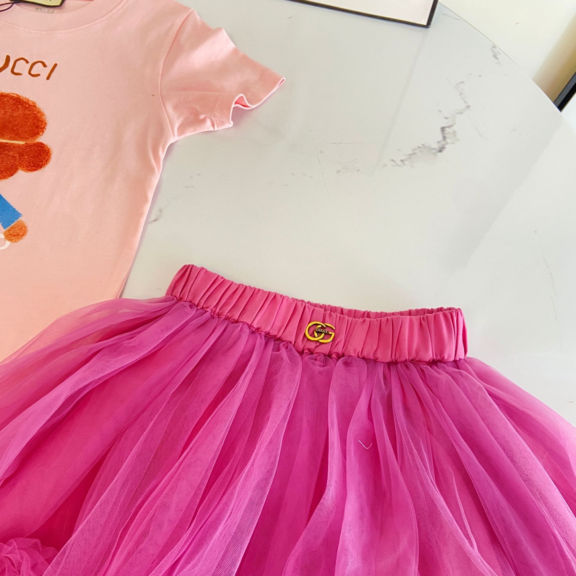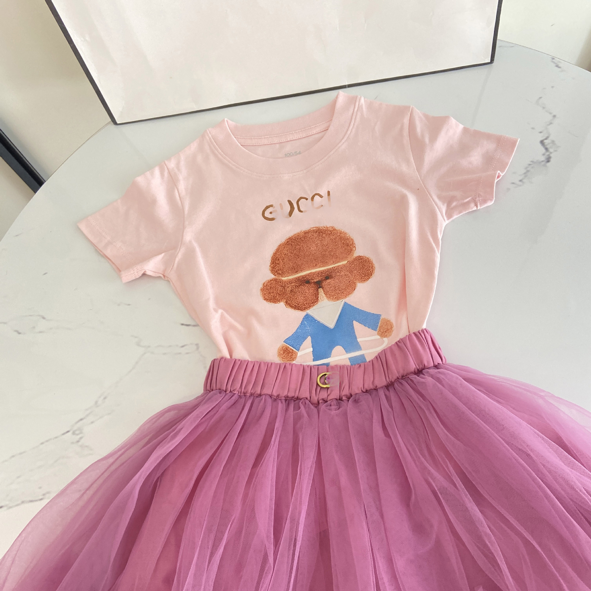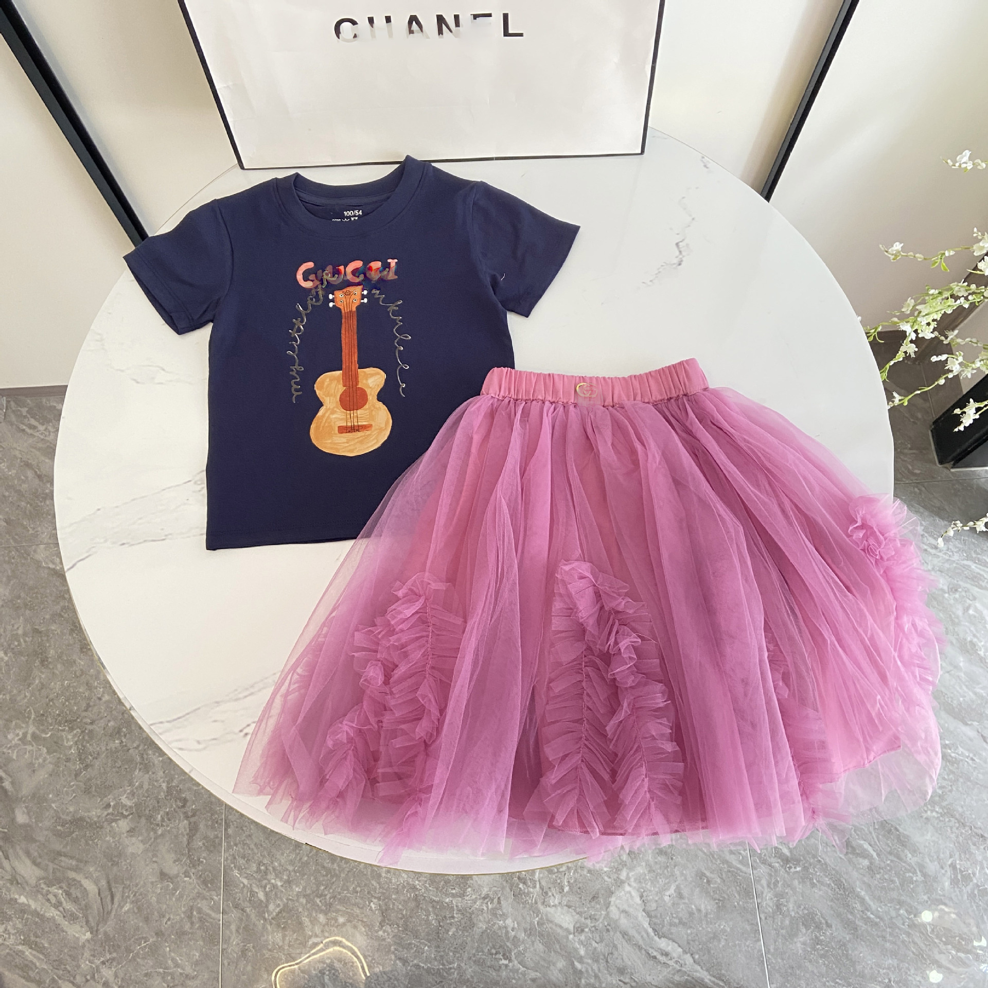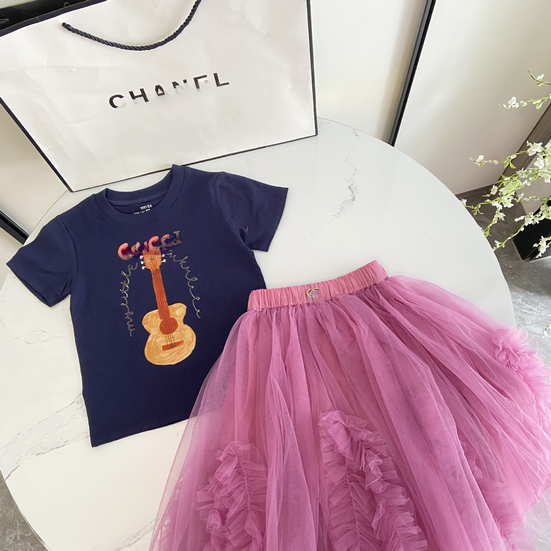 2025 새로운 여름 소녀 티셔츠 + 보라색 스커트 순수 코튼 반팔 프린트 탑 퍼프 스커트 유행 여성스토어 가기