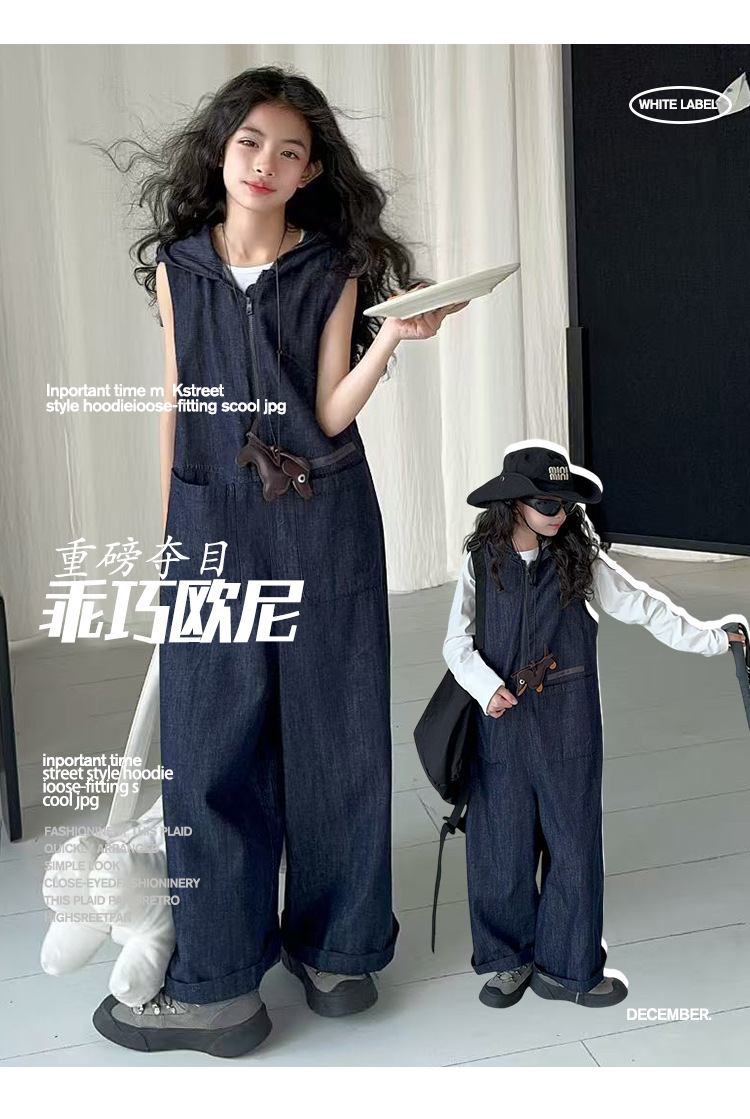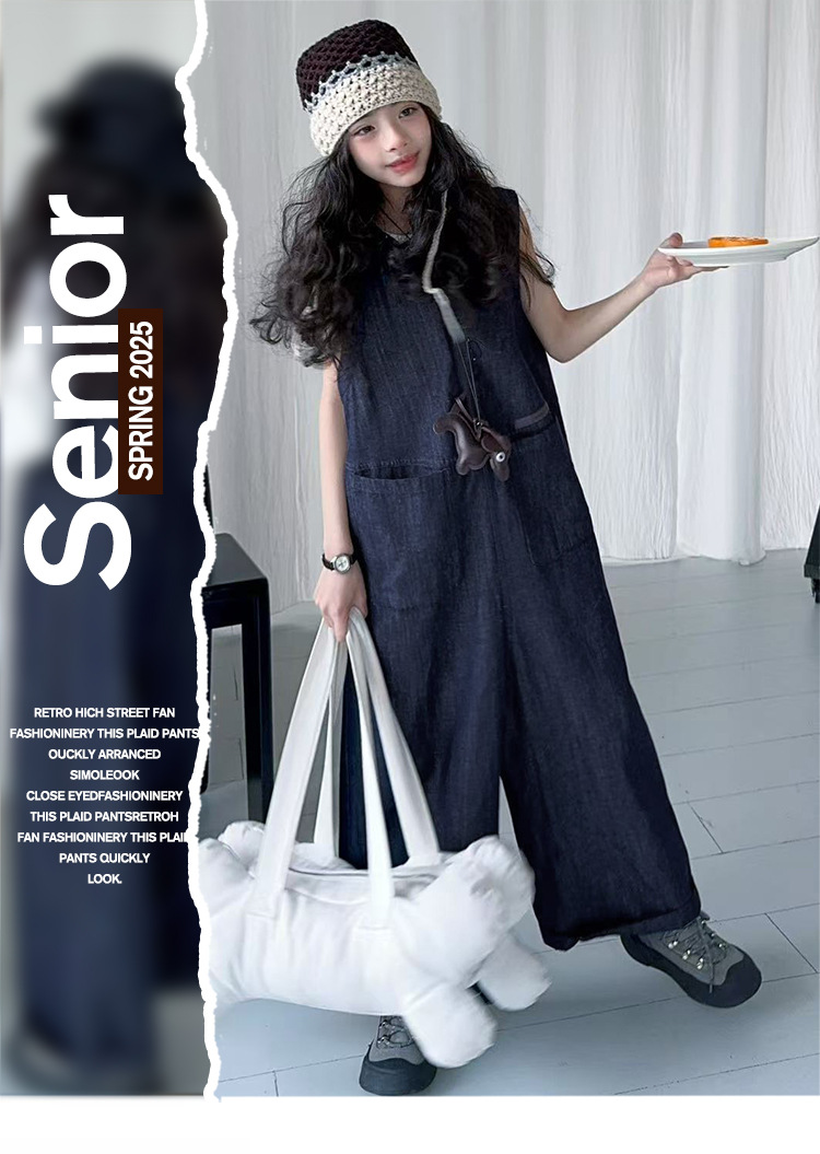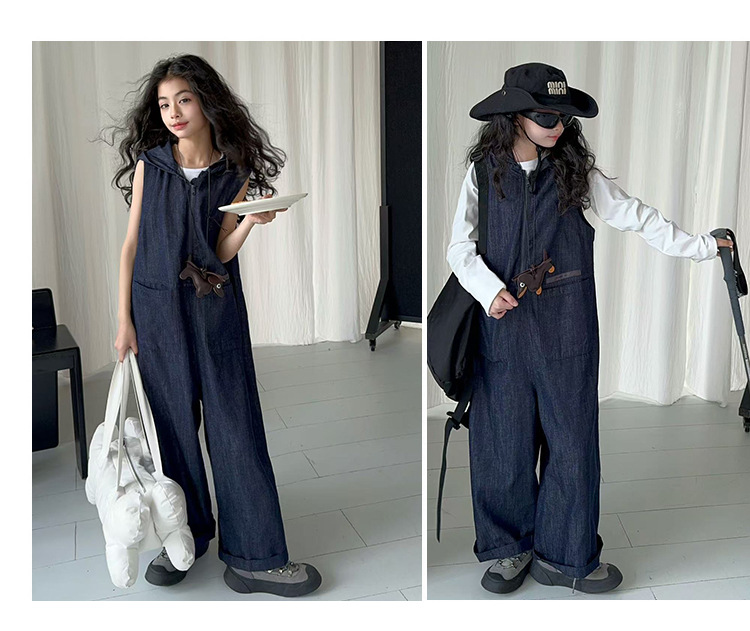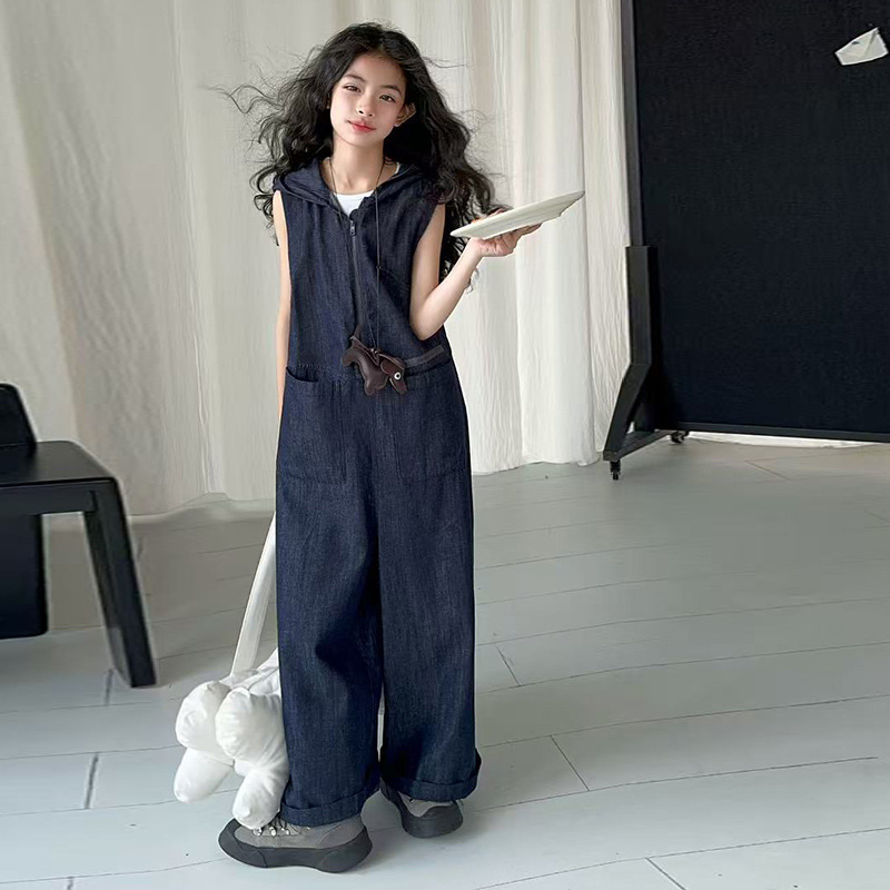 소녀 2025 봄과 여름 바지 한국 스타일 민소매 조끼 바지 바지 느슨한 슬리밍 넓은 다리 캐주얼 바지