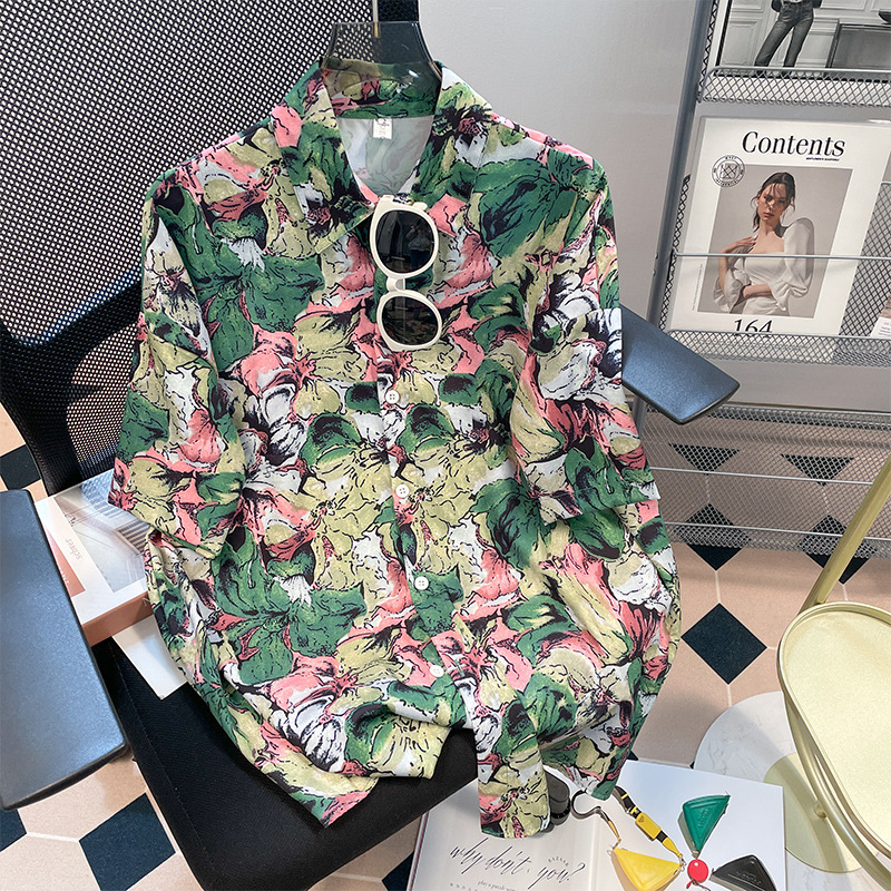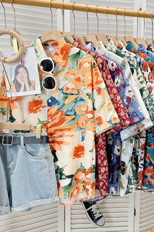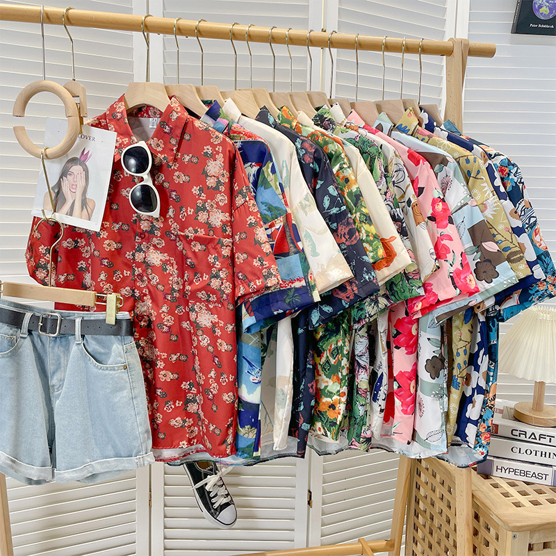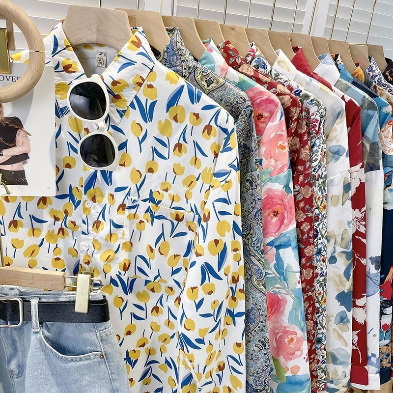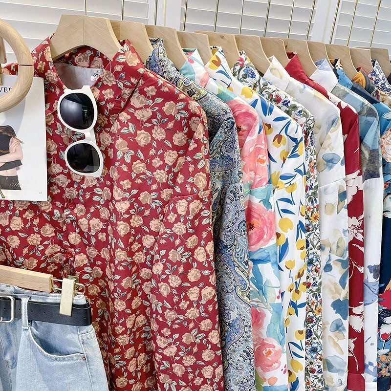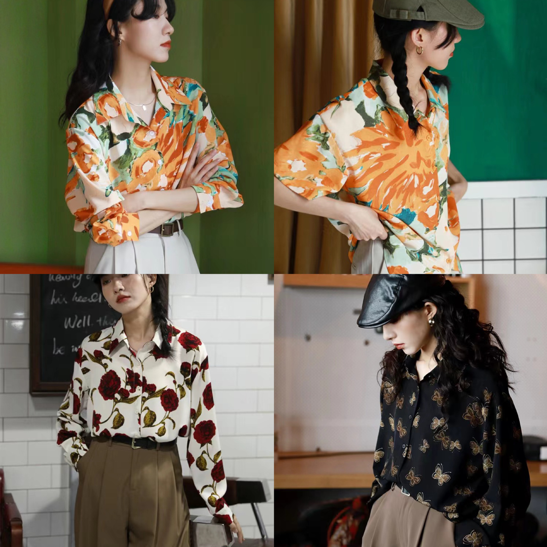 원피스 시상식 클럽 공연 2024 레트로 플로랄 프린트 셔츠 여성 골동품 공연 봄과 가을 탑스토어 가기