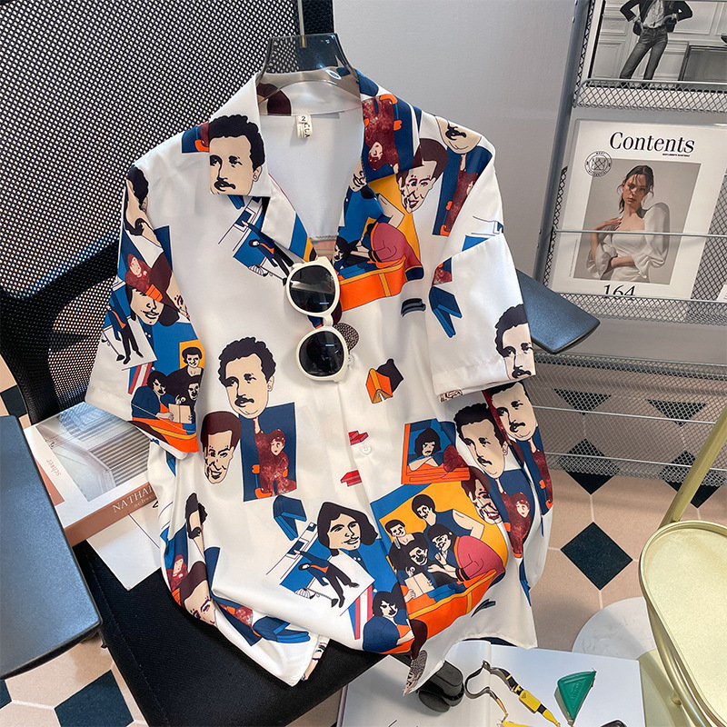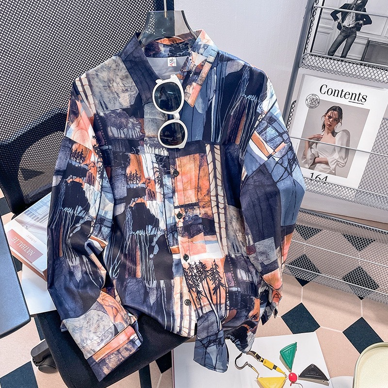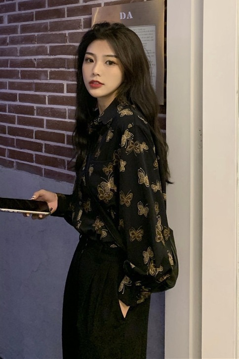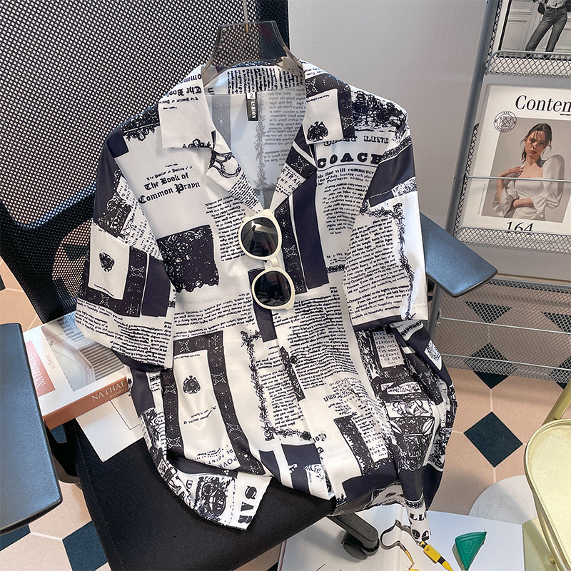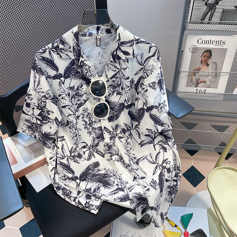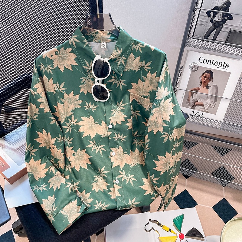 원피스 시상식 클럽 공연 2024 레트로 플로랄 프린트 셔츠 여성 골동품 공연 봄과 가을 탑스토어 가기