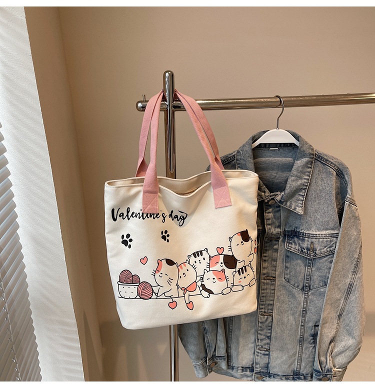 한국 스타일 대용량 만화 캔버스 통근 가방 여성 2025 새로운 유행 캐주얼 핸드 운반 토트 백