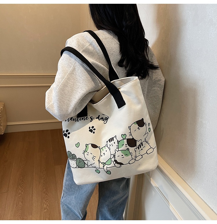 한국 스타일 대용량 만화 캔버스 통근 가방 여성 2025 새로운 유행 캐주얼 핸드 운반 토트 백스토어 가기