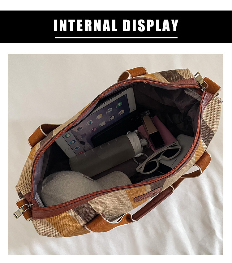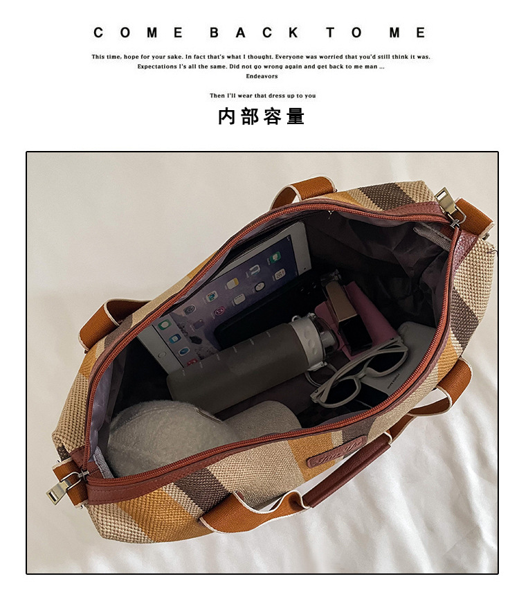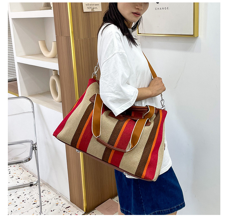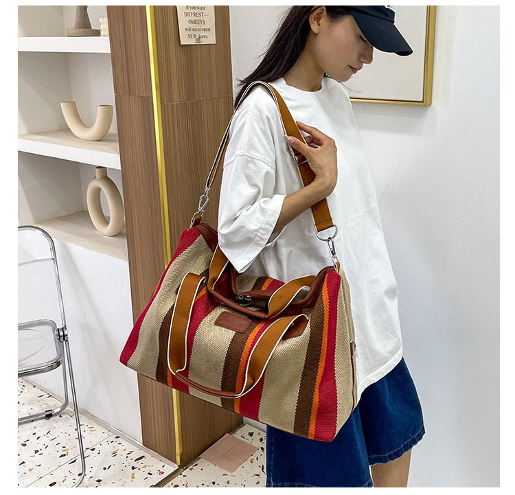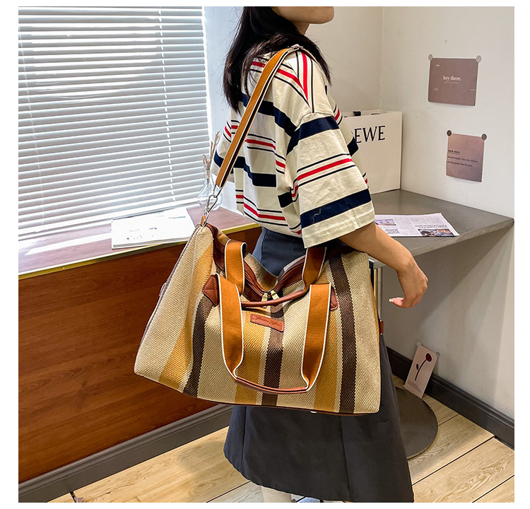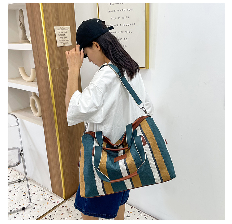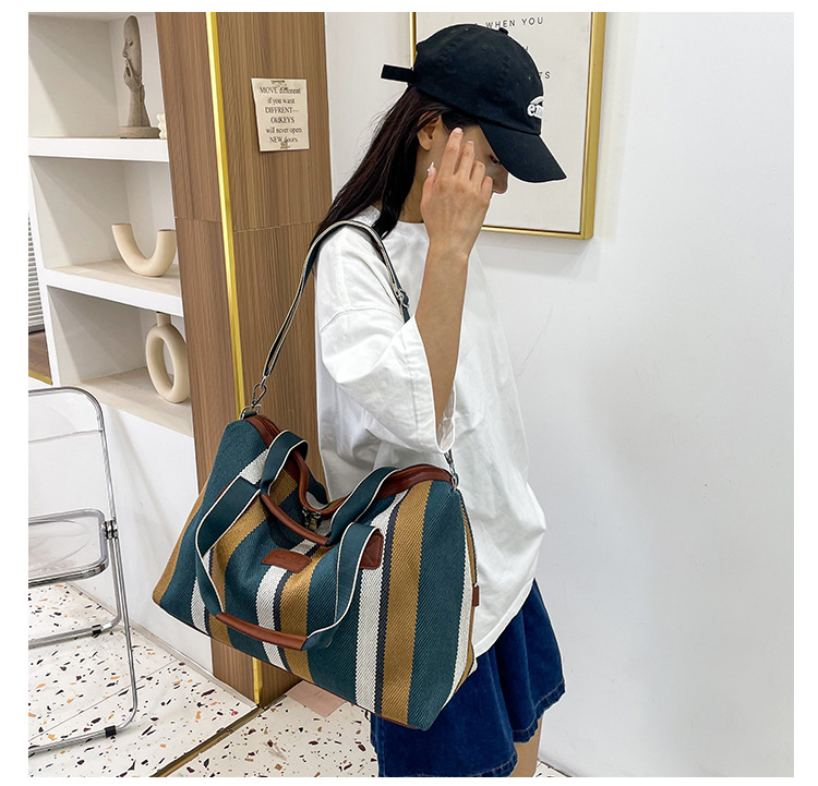 국경 간 새로운 줄무늬 단거리 여행 가방 여성 일본식 거친 캔버스 핸드 수하물 가방 대용량 어깨 크로스 바디 백스토어 가기