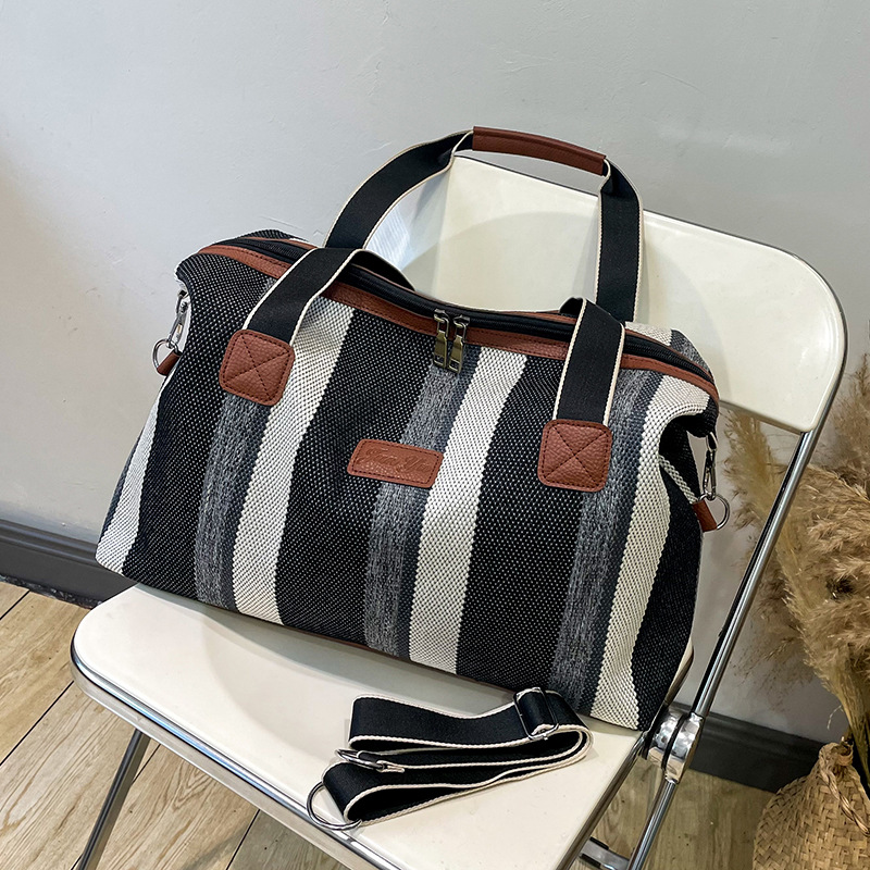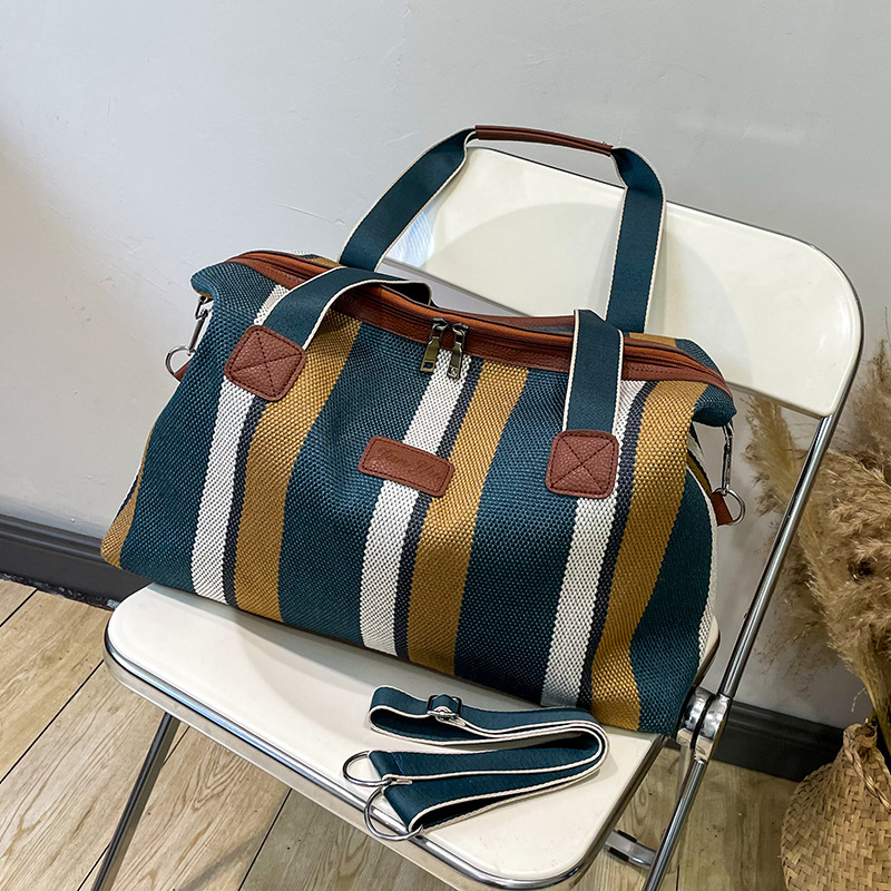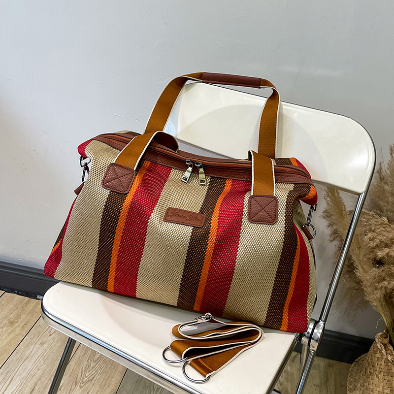 국경 간 새로운 줄무늬 단거리 여행 가방 여성 일본식 거친 캔버스 핸드 수하물 가방 대용량 어깨 크로스 바디 백