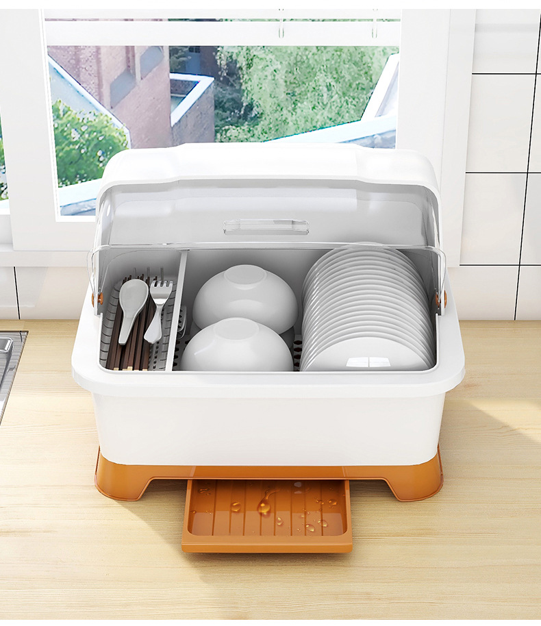뚜껑 식기 보관 랙 가정용 테이블 탑 다기능 그릇 및 젓가락 보관 상자 상자가있는 주방 배수 찬장