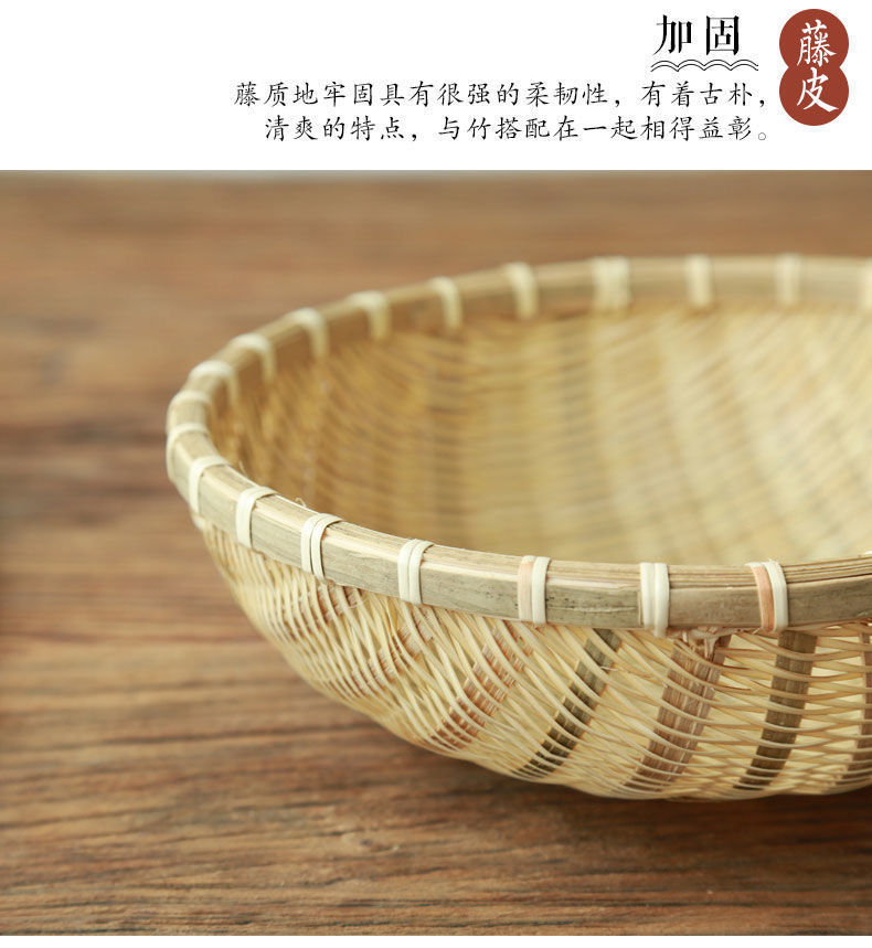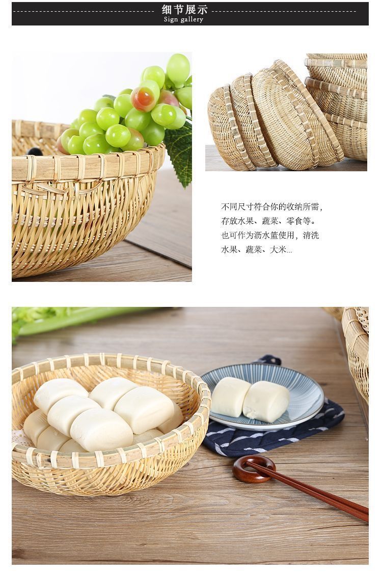 대나무 뗏목 먼지 둥근 Shau Kei 대나무 체 농장 대나무 제품 저장 바구니 야채 세척을위한 가정용 과일 바구니스토어 가기