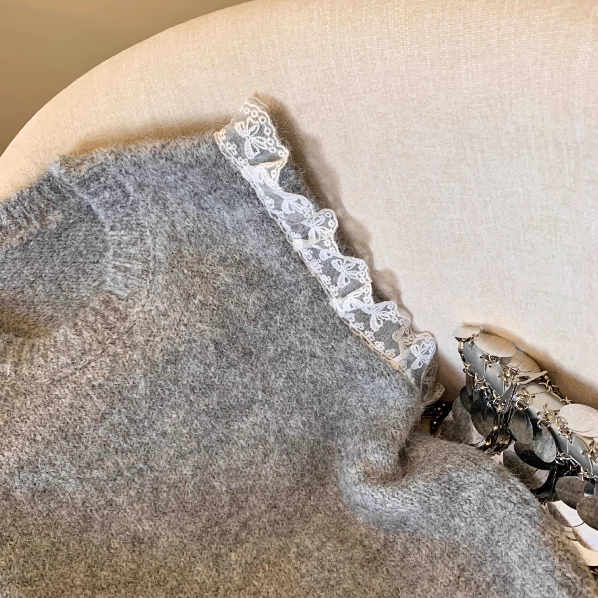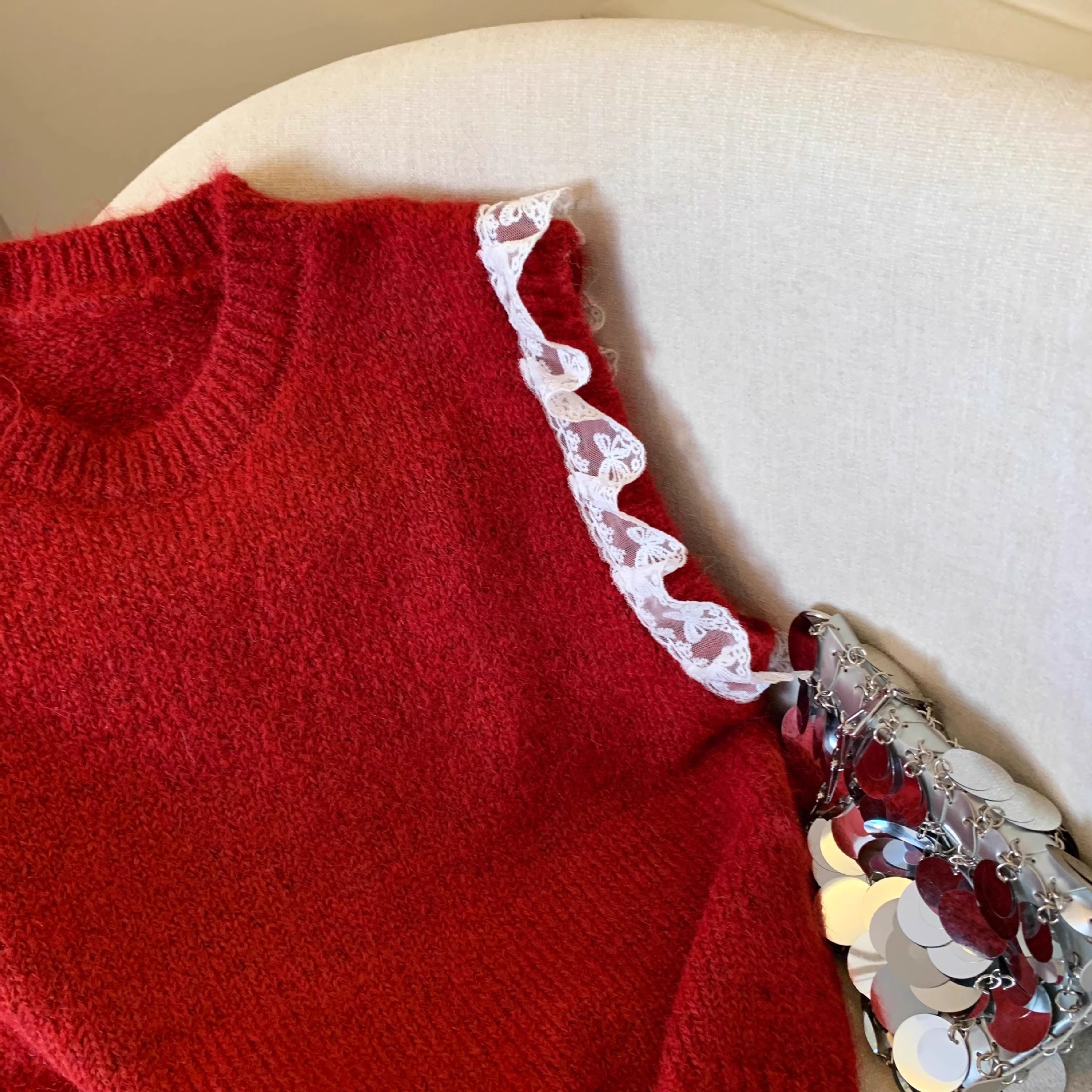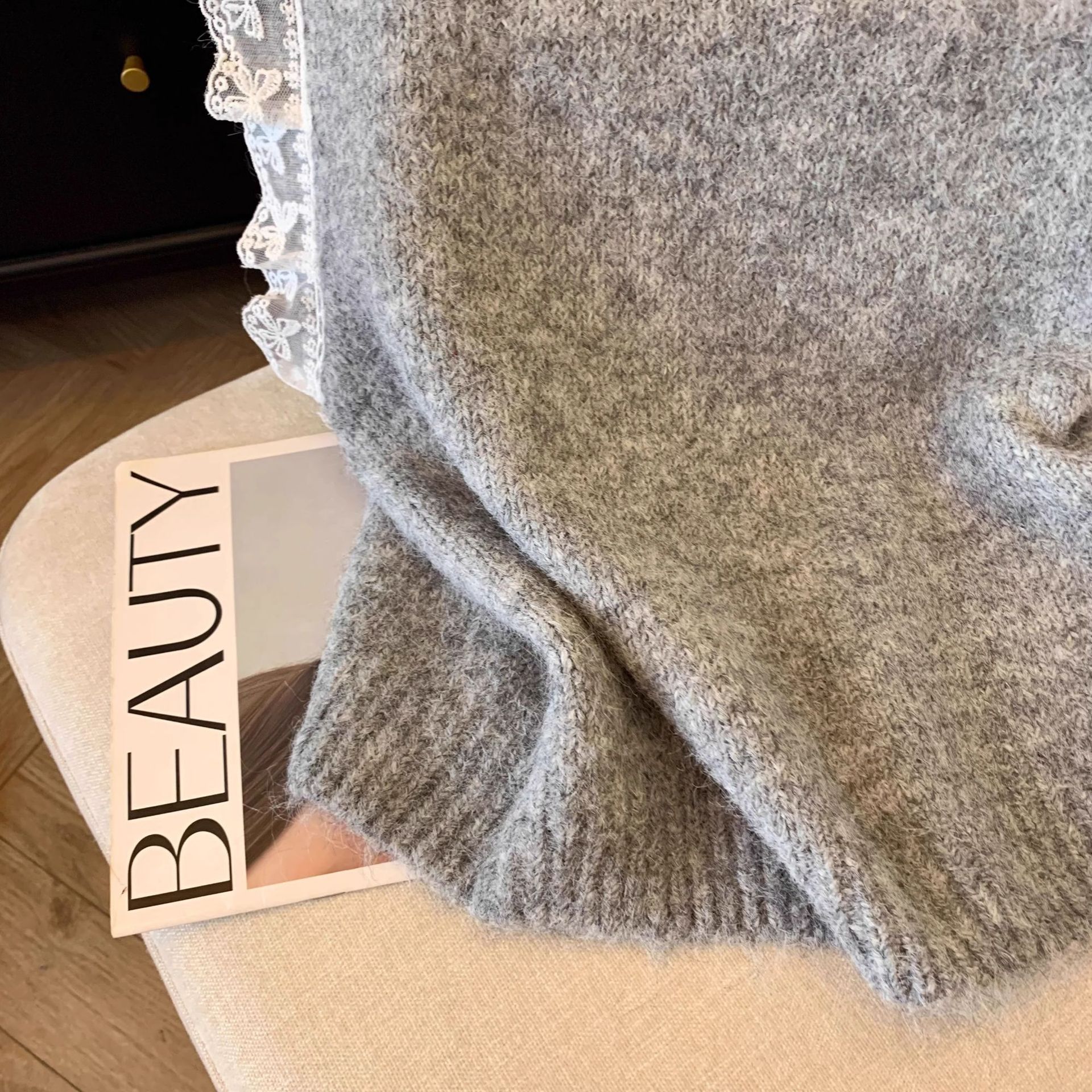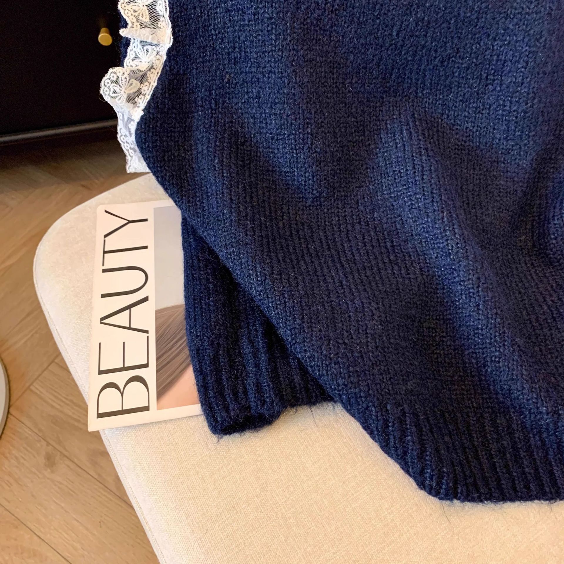 빈티지 레이스 바느질 민소매 니트 조끼 여성의 봄과 가을 둥근 목 느슨한 게으른 스타일 서양식 스웨터 탑