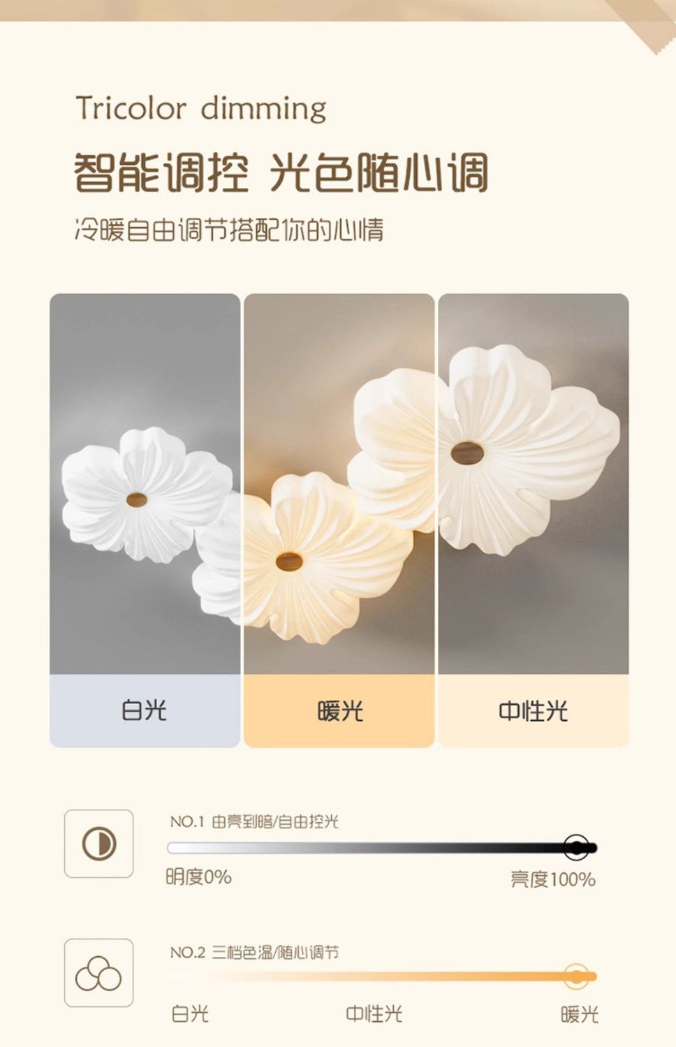 • [침실 램프/싱글 헤드] - 직경 52cm - [3색 조광/풀 스펙트럼] 조명 색상 조절이 가능한 벽면 제어 스위치