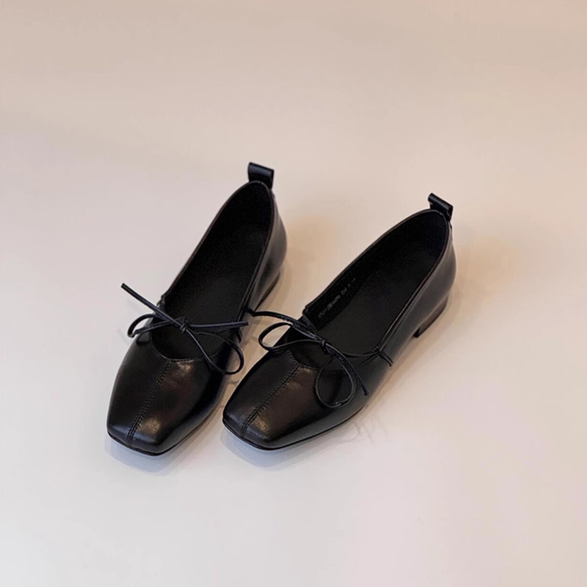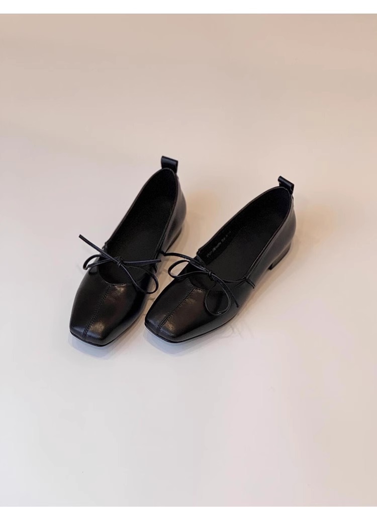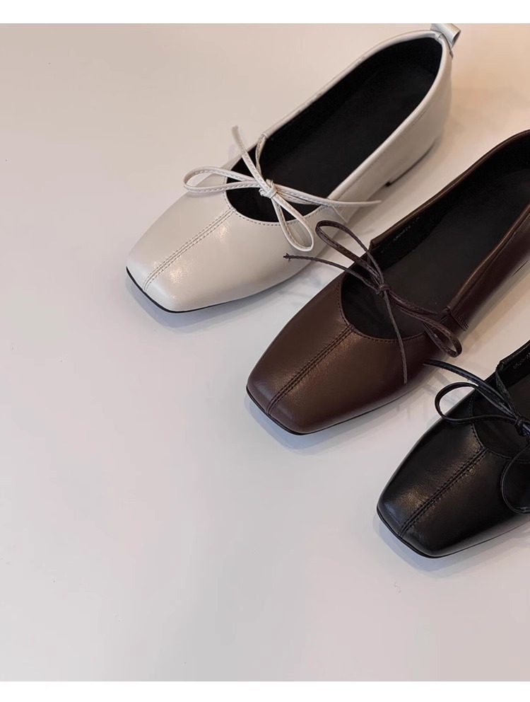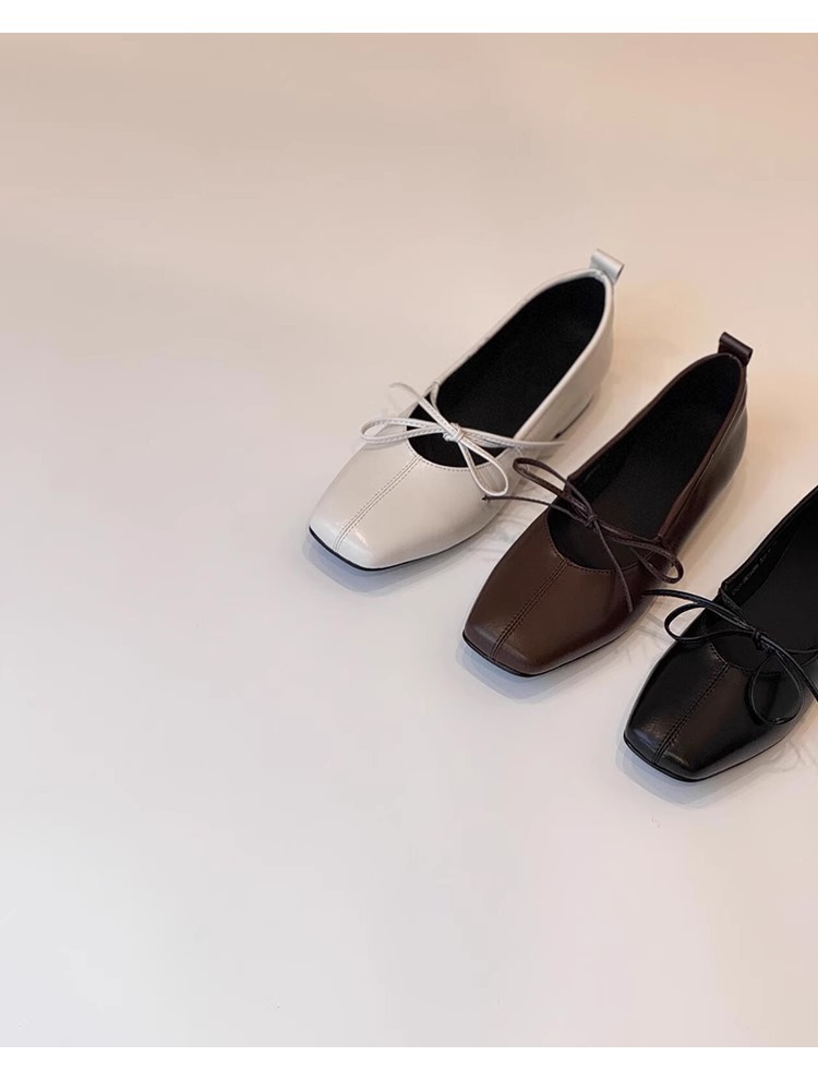 즉시 배송~ 다용도 리본 끈 단화 여성용 슬립온 스퀘어토 플랫 슈즈 얕은 굽 편안한 발레 슈즈