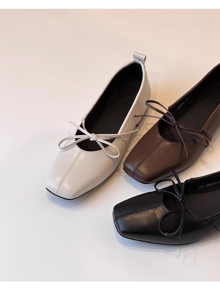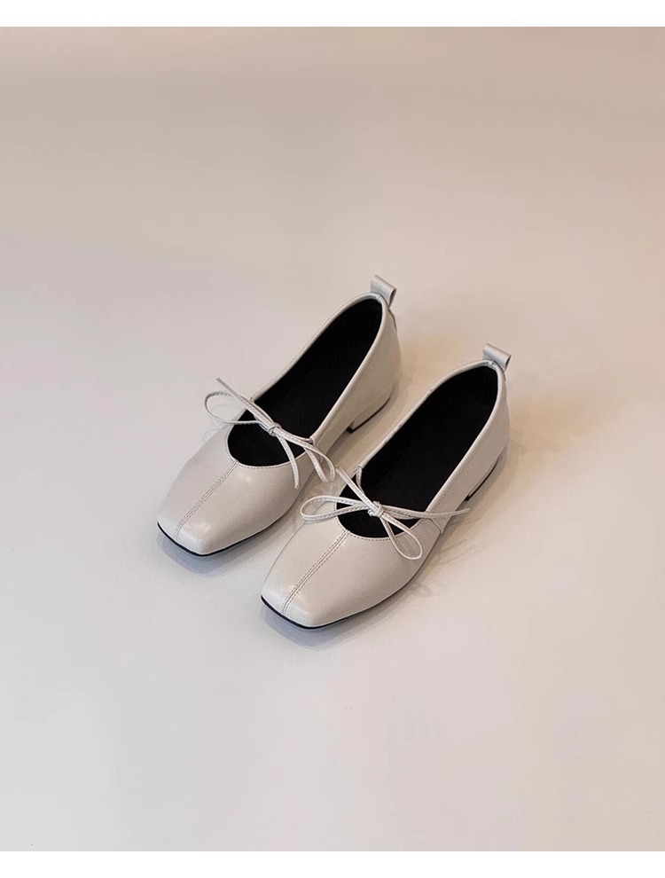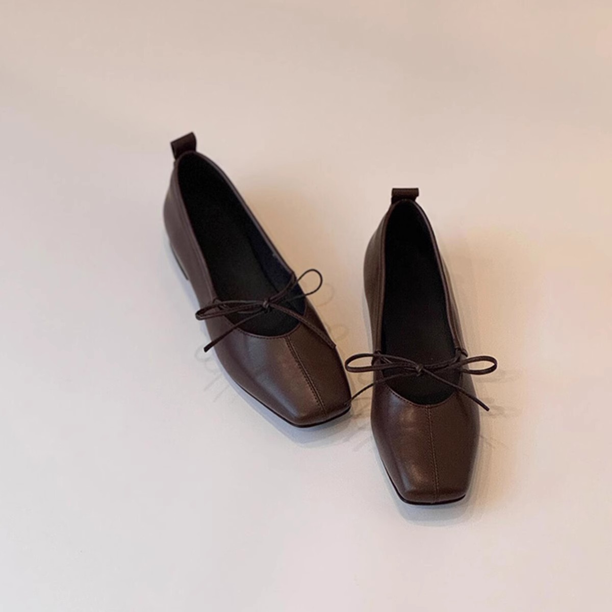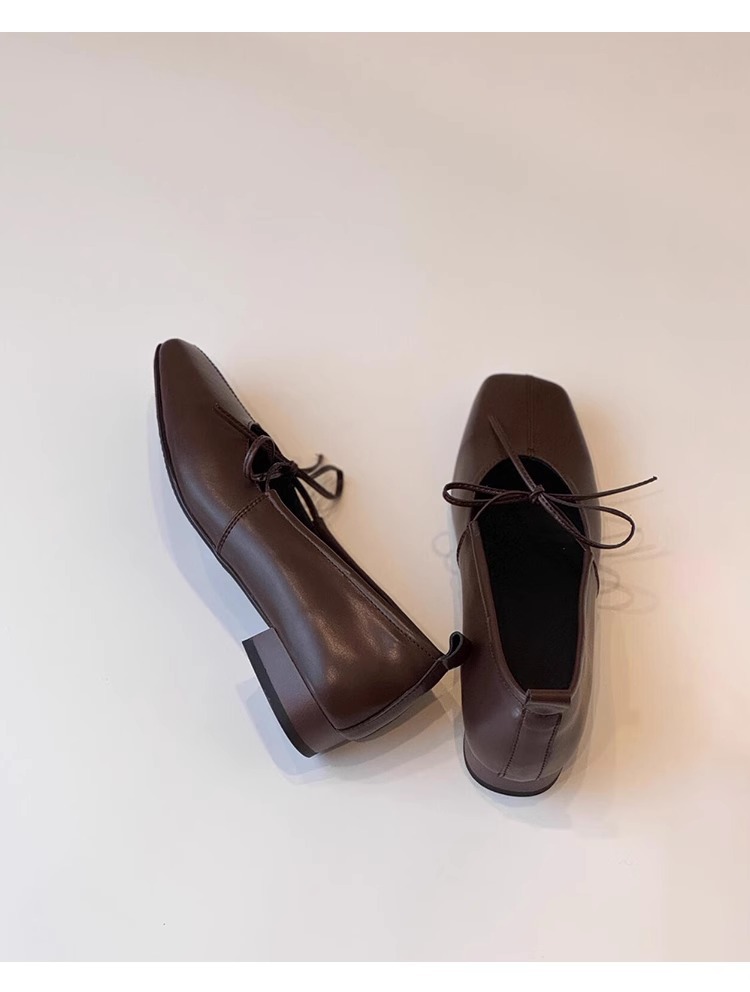 즉시 배송~ 다용도 리본 끈 단화 여성용 슬립온 스퀘어토 플랫 슈즈 얕은 굽 편안한 발레 슈즈