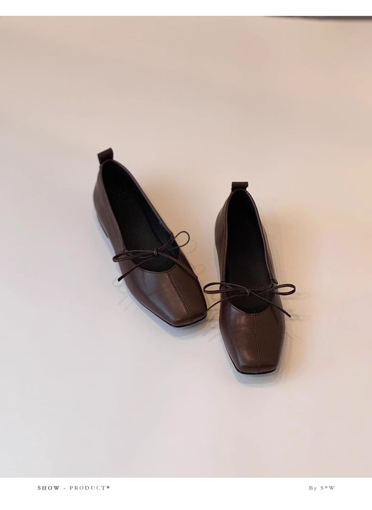 즉시 배송~ 다용도 리본 끈 단화 여성용 슬립온 스퀘어토 플랫 슈즈 얕은 굽 편안한 발레 슈즈스토어 가기