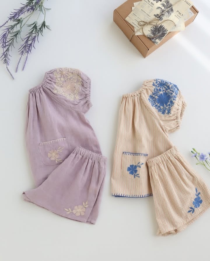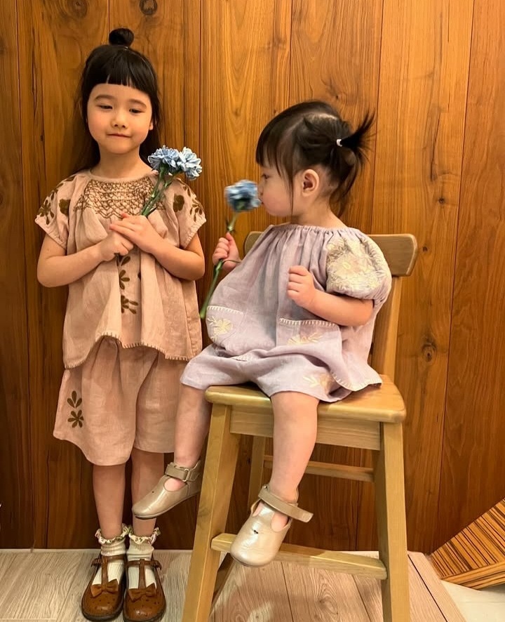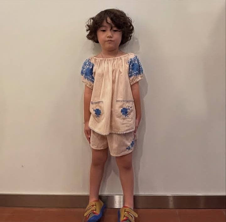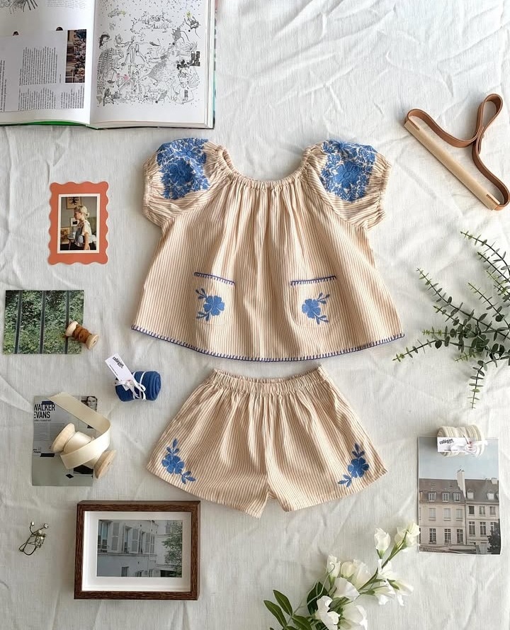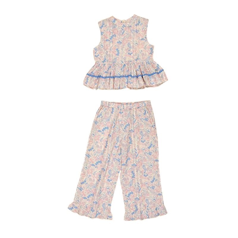 어린이 세트 2025 여름 apo 새로운 소녀 목가적 인 스타일 Gaoding 중공업 최고 반바지 투피스 세트스토어 가기