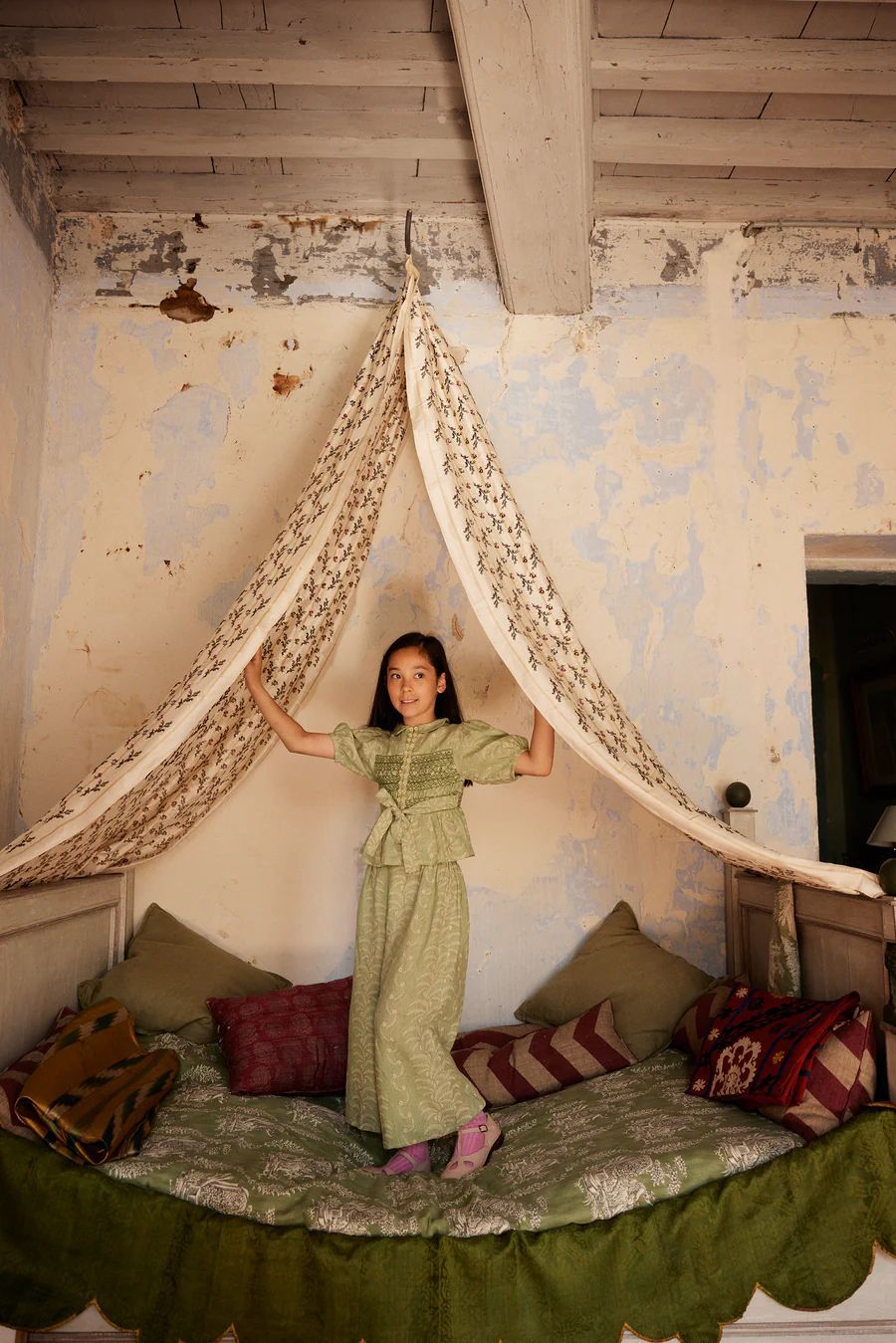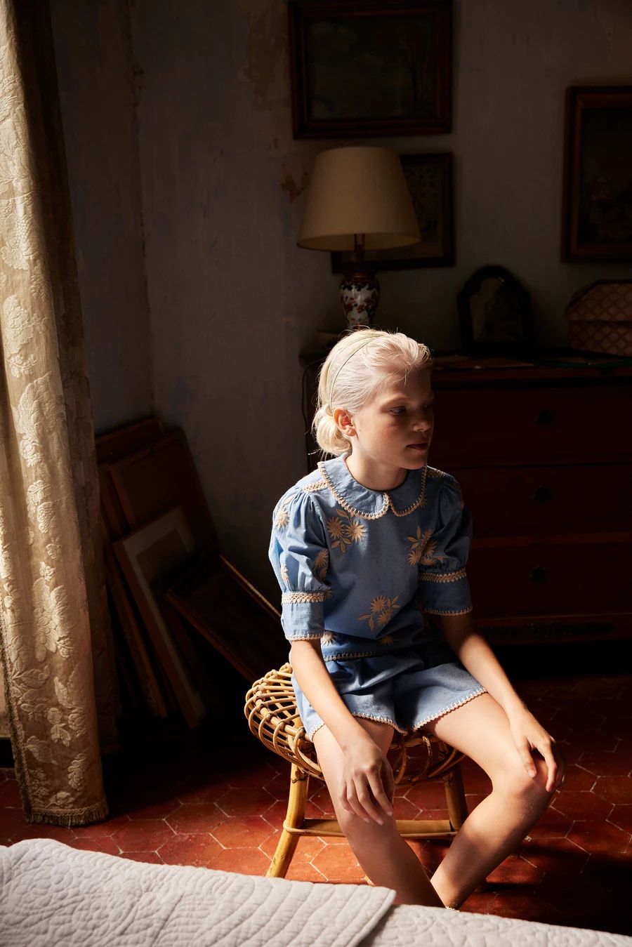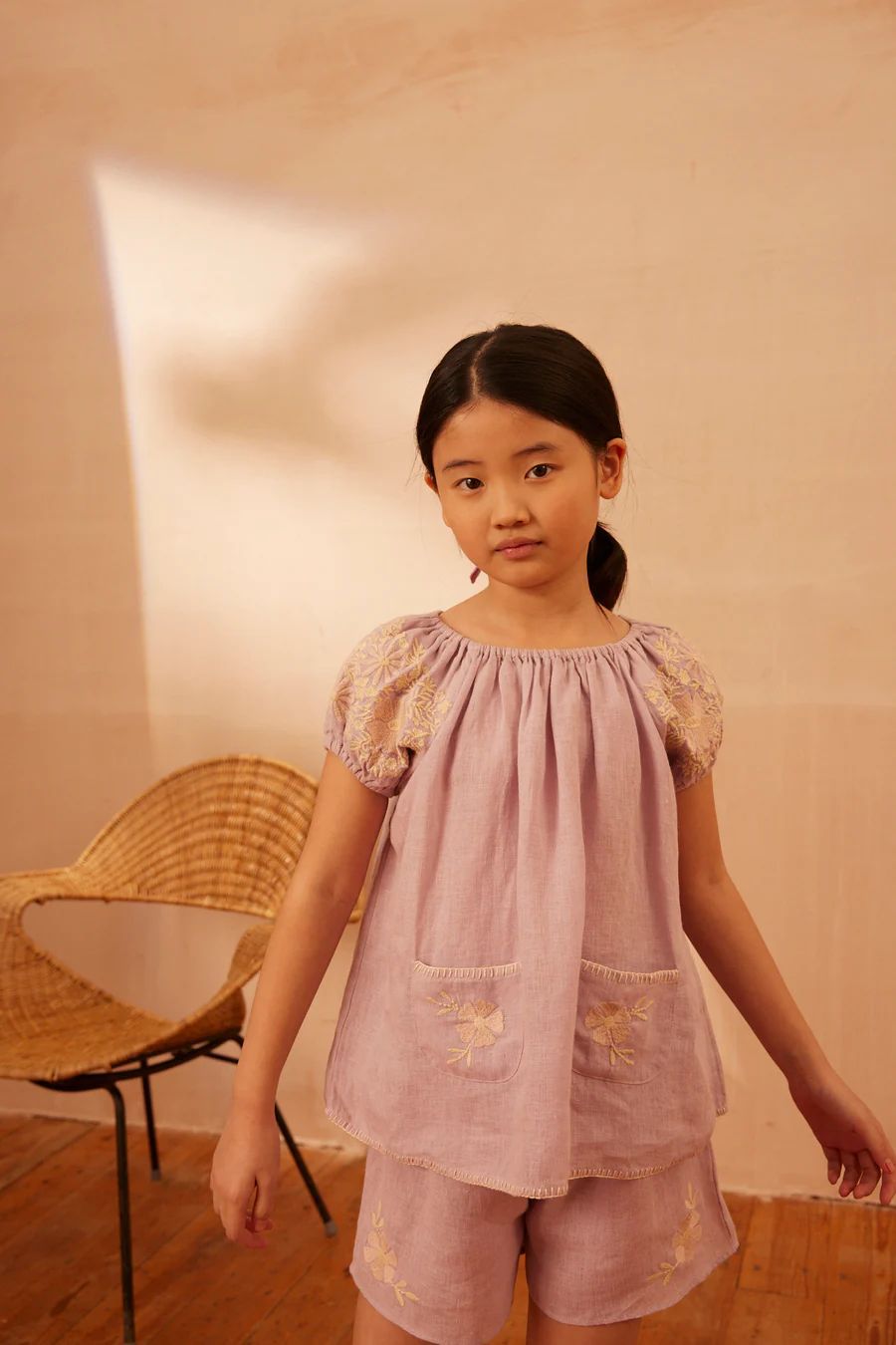 어린이 세트 2025 여름 apo 새로운 소녀 목가적 인 스타일 Gaoding 중공업 최고 반바지 투피스 세트스토어 가기