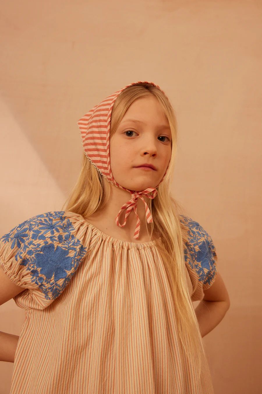 • 살구 스트라이프 자수 슈트 [재고]