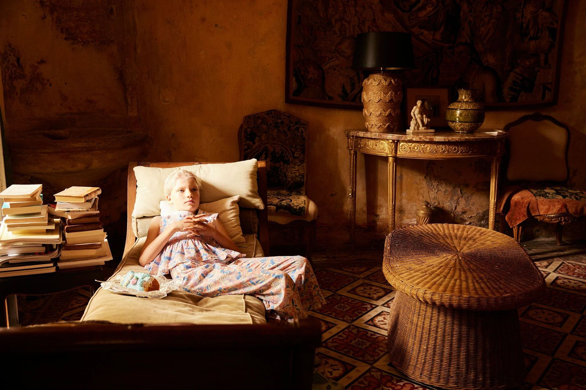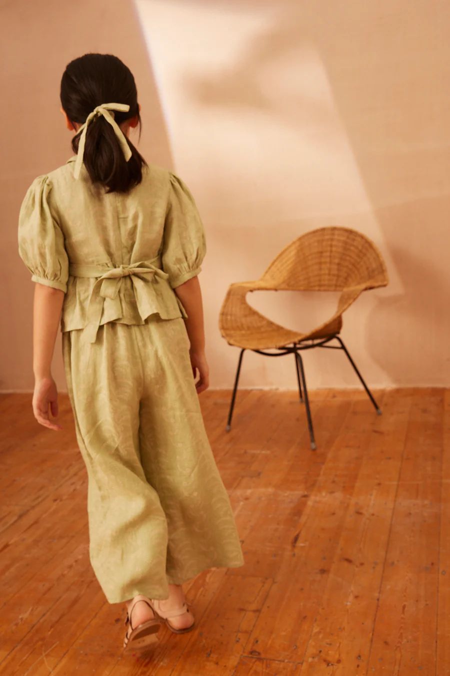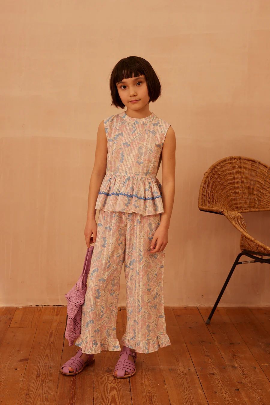 어린이 세트 2025 여름 apo 새로운 소녀 목가적 인 스타일 Gaoding 중공업 최고 반바지 투피스 세트