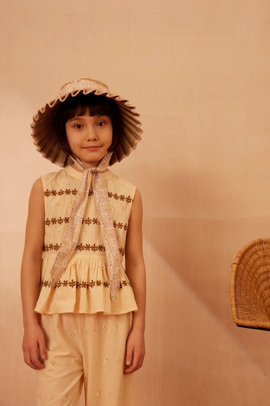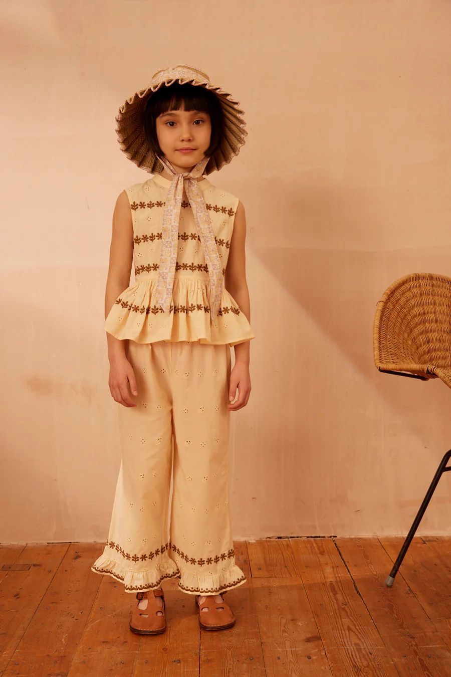 • 살구 자수 중공 조끼 세트 [재고 있음]