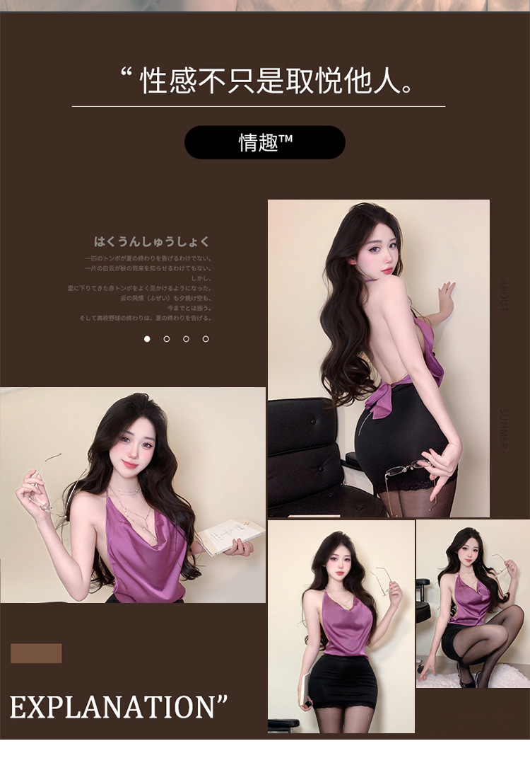 새로운 순수한 욕망 매달려 목 메쉬 윙 칼라 가슴 등방없는 나이트 드레스 섹시한 유혹 메쉬 관점 파자마 2132