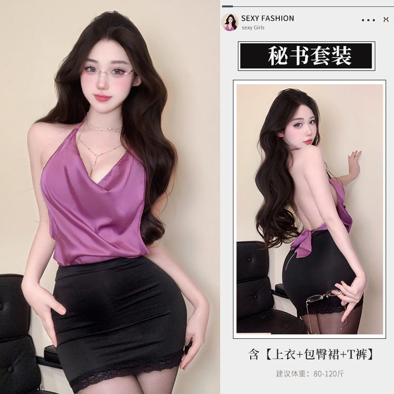 새로운 순수한 욕망 매달려 목 메쉬 윙 칼라 가슴 등방없는 나이트 드레스 섹시한 유혹 메쉬 관점 파자마 2132스토어 가기