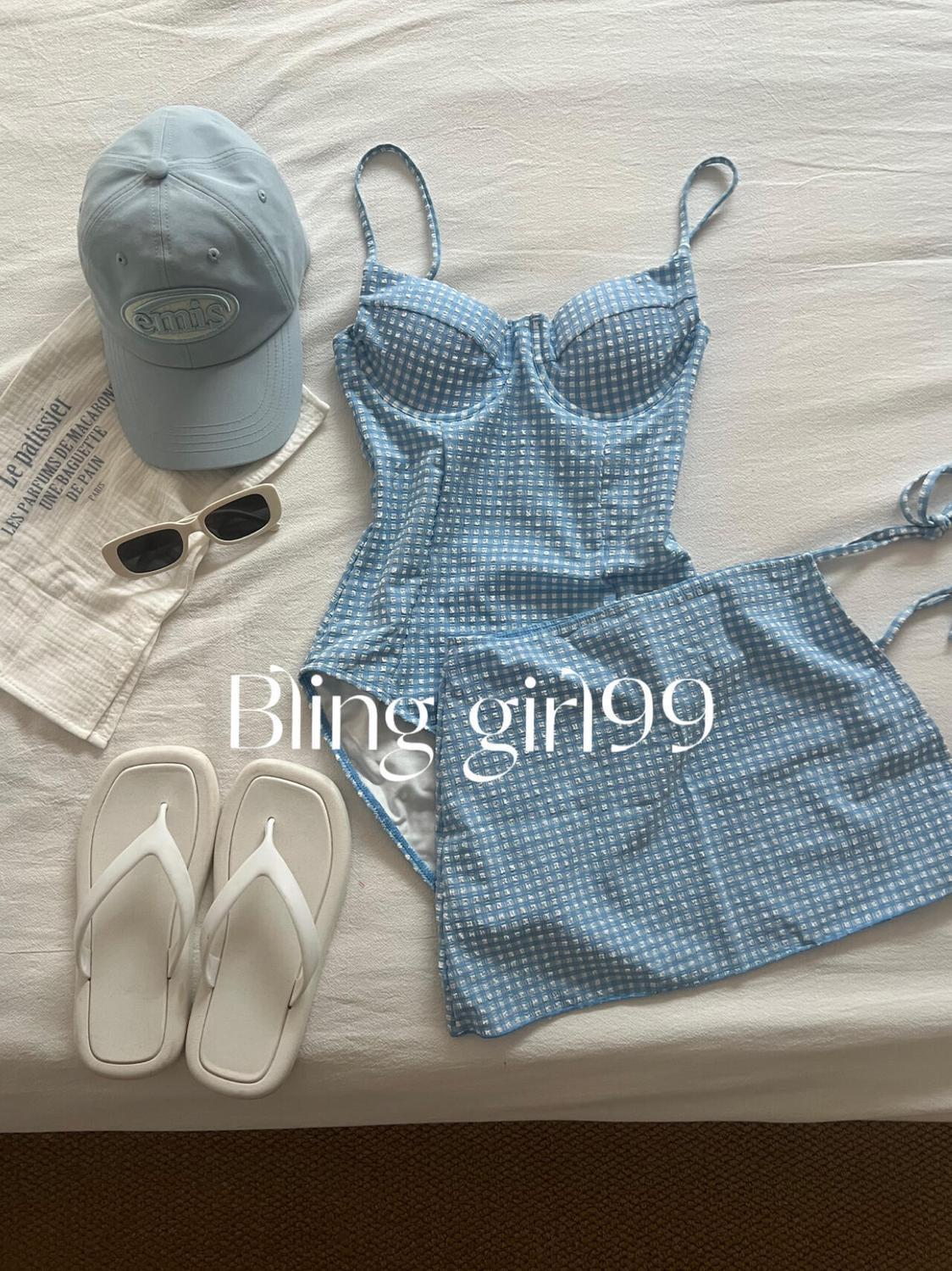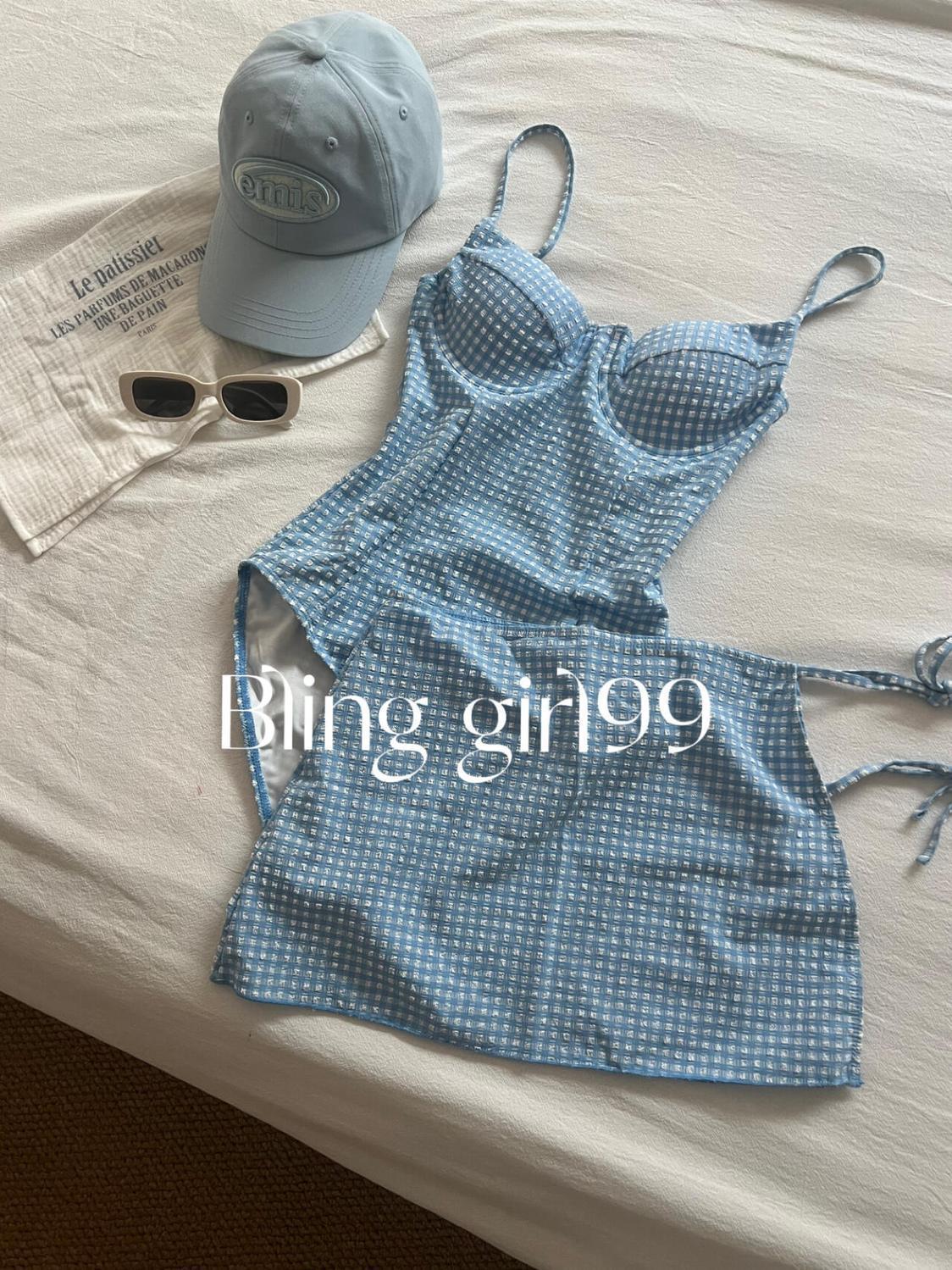 새로운 도파민 블루 슬링 순수한 섹시한 스커트 스타일 수영복 여성 격자 무늬 온천 귀여운 슈퍼 페어리스토어 가기