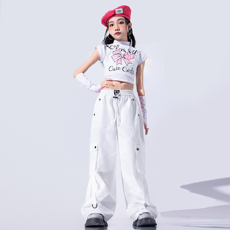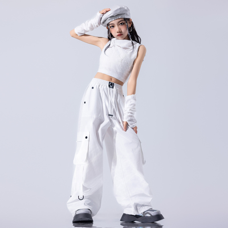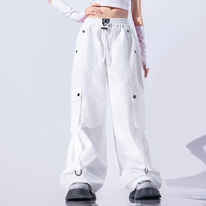 소녀 화이트 커버 바지 여름 얇은 빠른 건조 미국 바지 높은 허리 재즈 댄스 캐주얼 2024 새로운 스타일