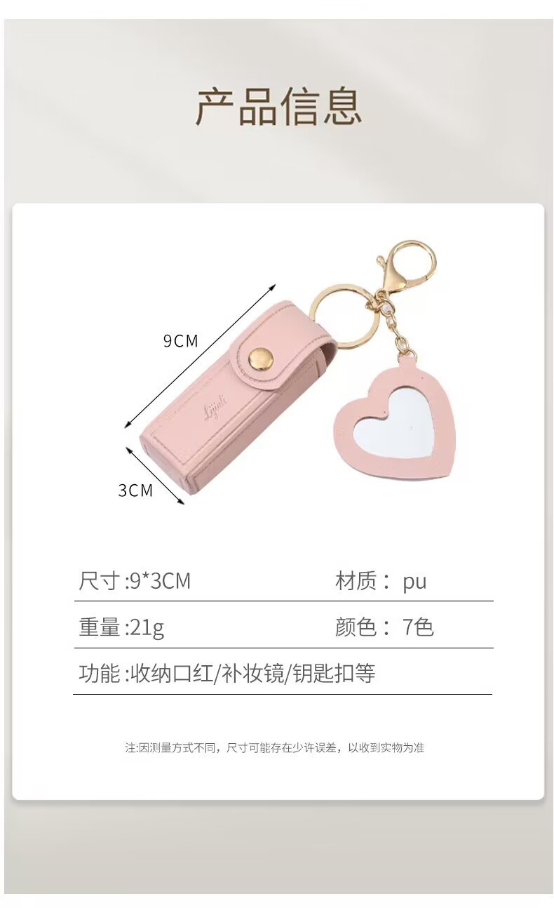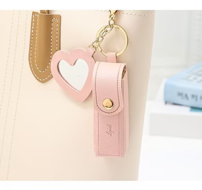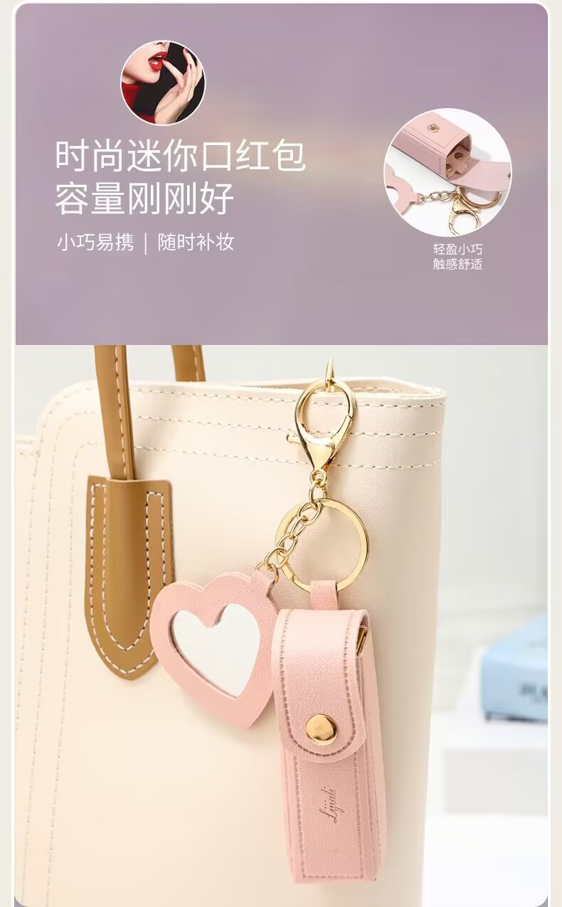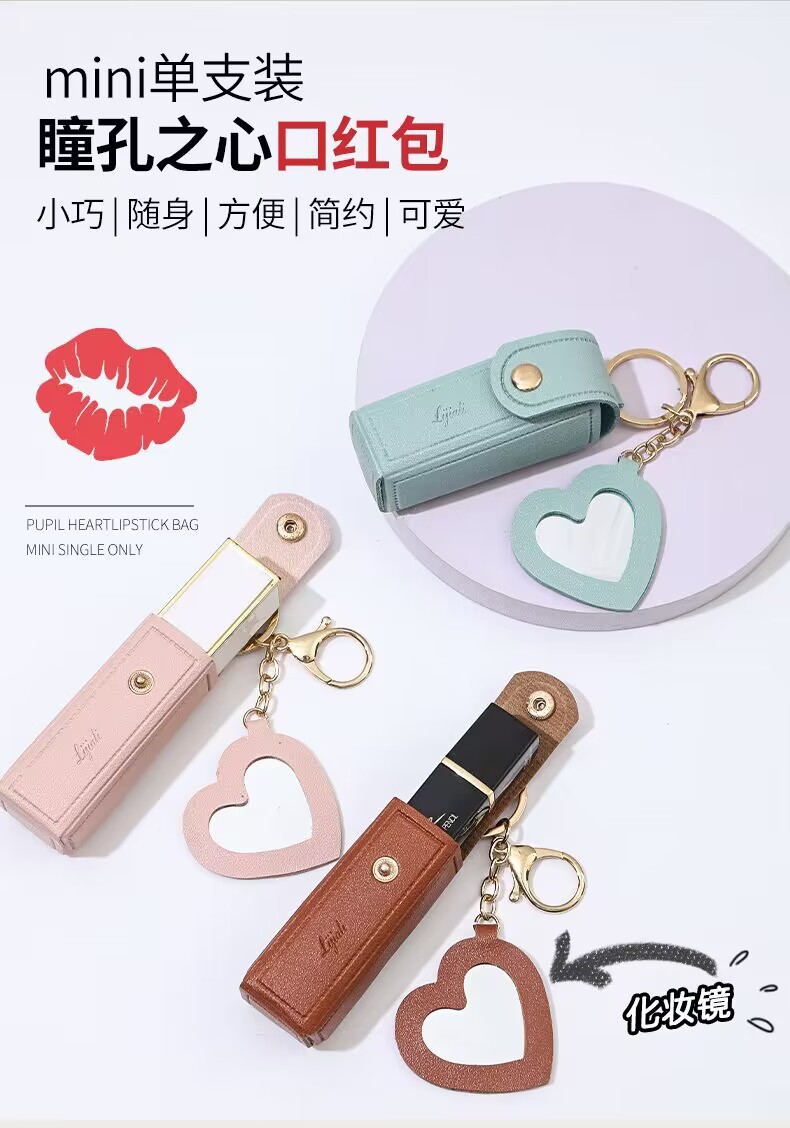 휴대용 립스틱 가방, 하트 거울, 미니 화장품 가방, 동전 지갑, 열쇠고리, 수납 가방, 방수 화장품 가방