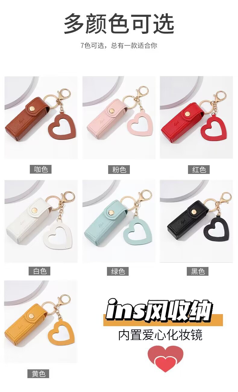 휴대용 립스틱 가방, 하트 거울, 미니 화장품 가방, 동전 지갑, 열쇠고리, 수납 가방, 방수 화장품 가방스토어 가기