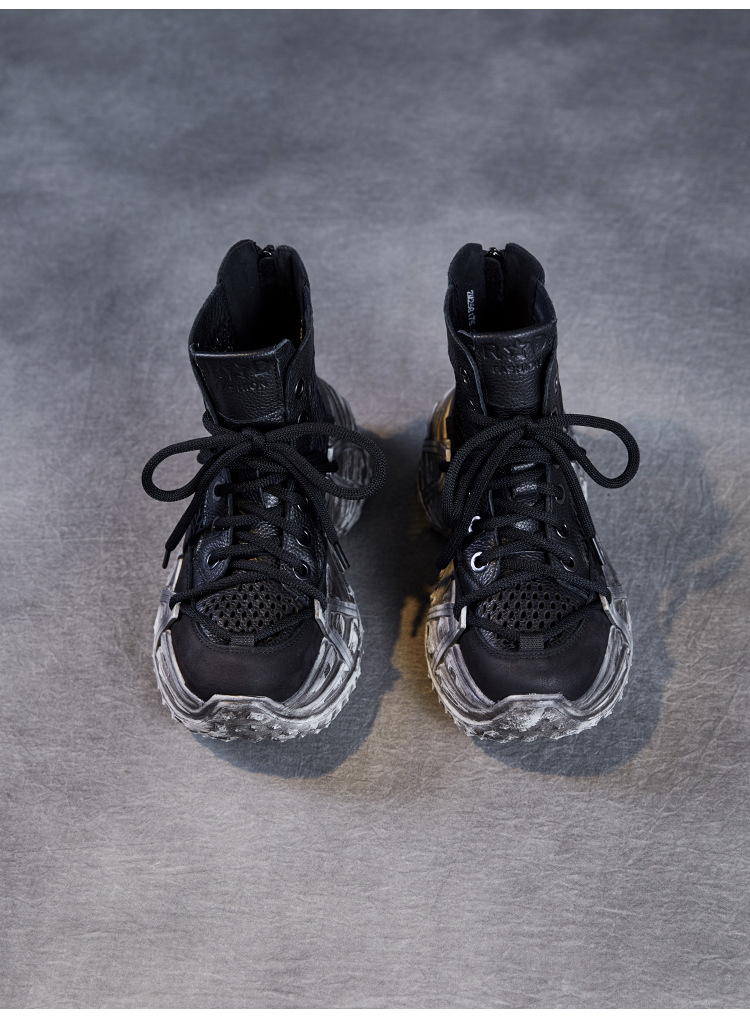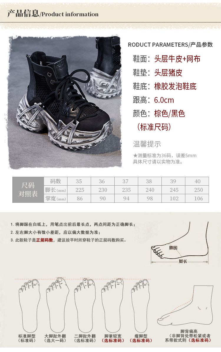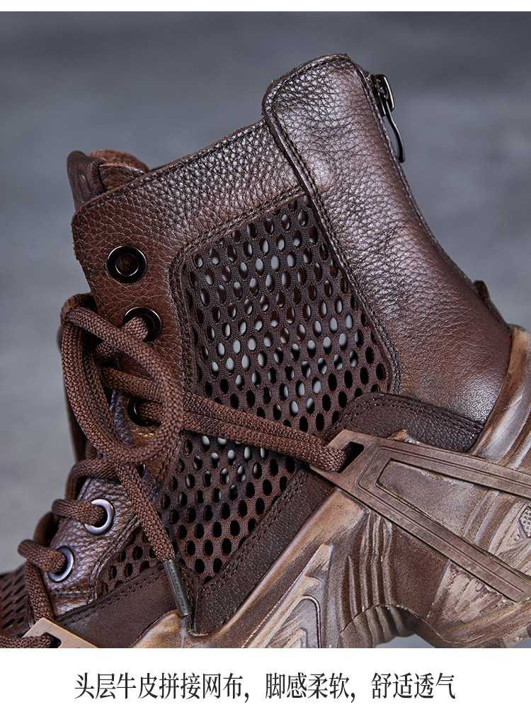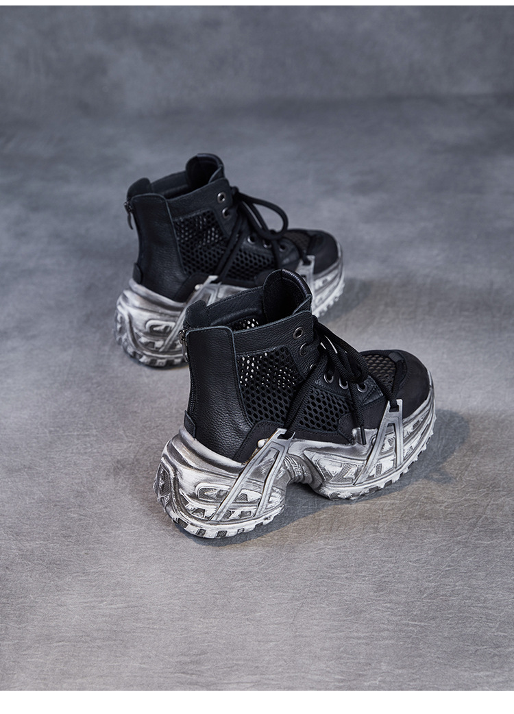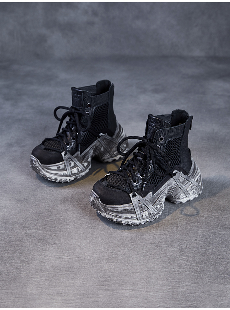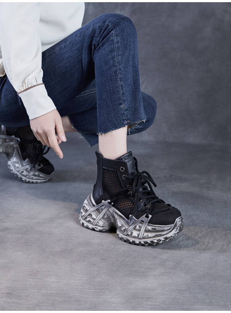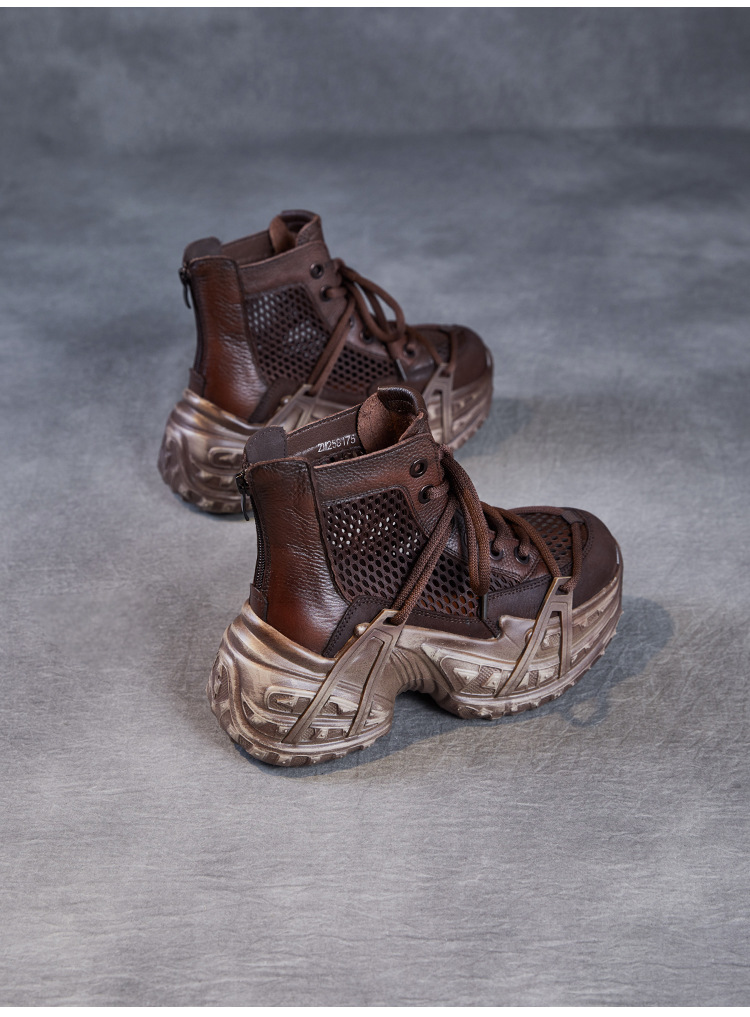 미국에 2025 년 봄과 여름 정품 가죽 두꺼운 밑창 증가 Cowhide Roman 플랫폼 짧은 메쉬 부츠 여성 통기성 패션 샌들