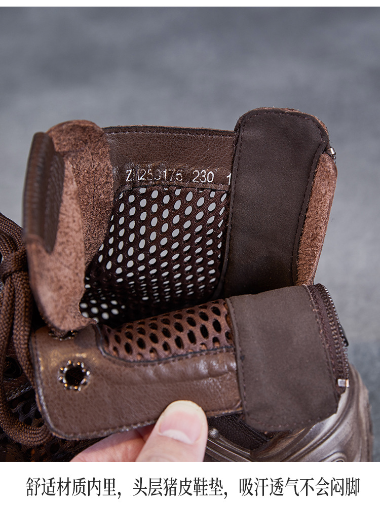 미국에 2025 년 봄과 여름 정품 가죽 두꺼운 밑창 증가 Cowhide Roman 플랫폼 짧은 메쉬 부츠 여성 통기성 패션 샌들스토어 가기