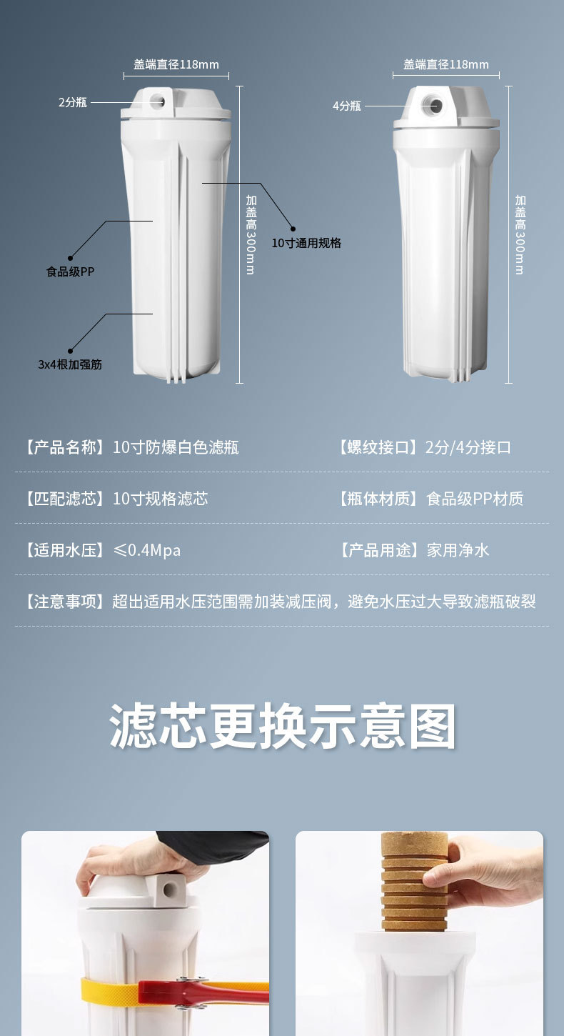 10 인치 필터 병 사전 필터 폭발 방지 2 점 4 점 흰색 병 필터 쉘 유니버설 DIY 정수기 액세서리스토어 가기