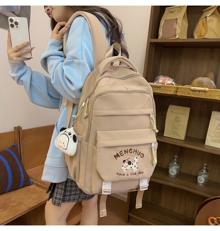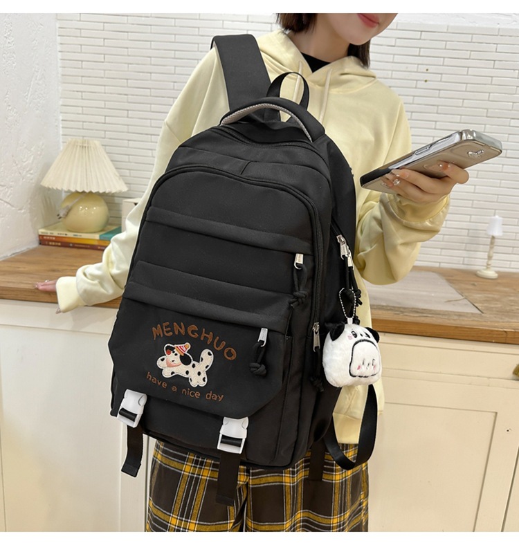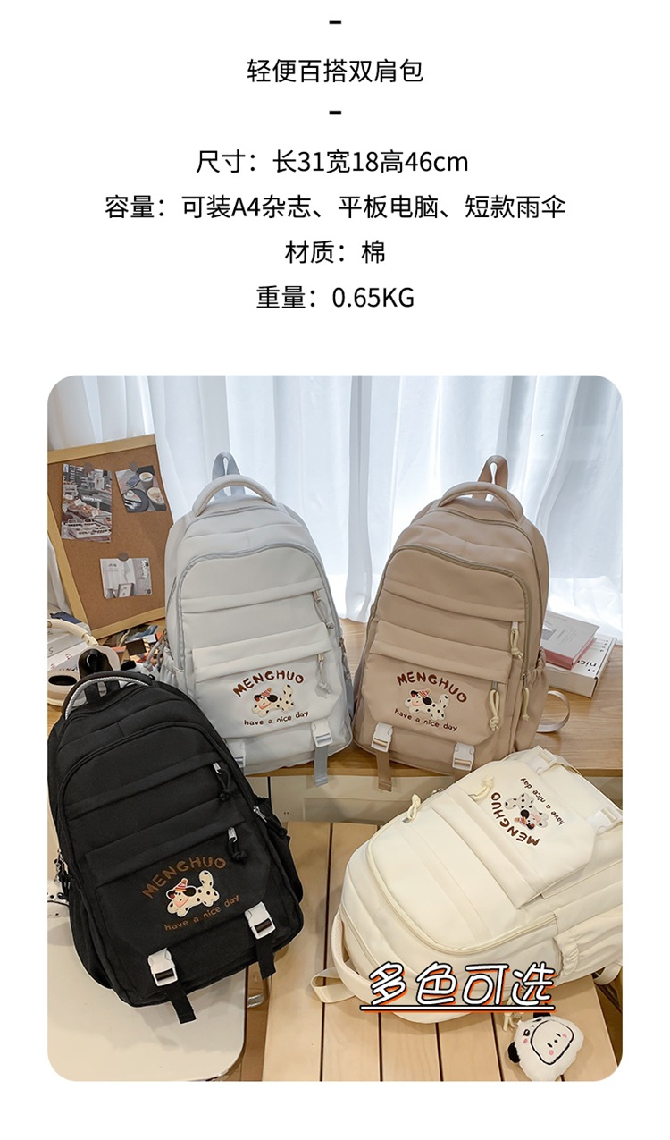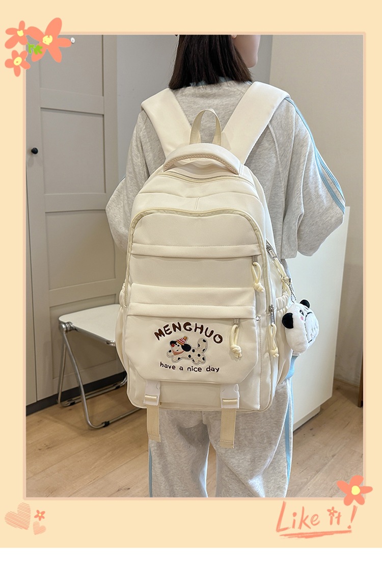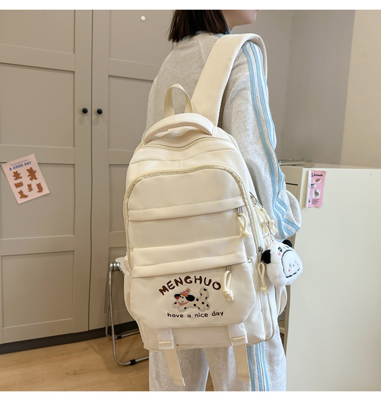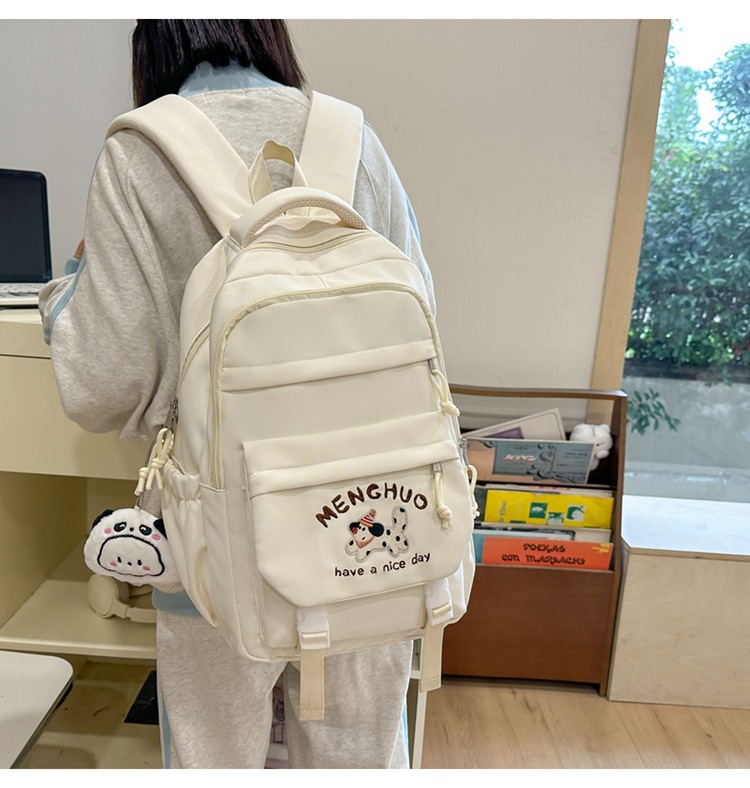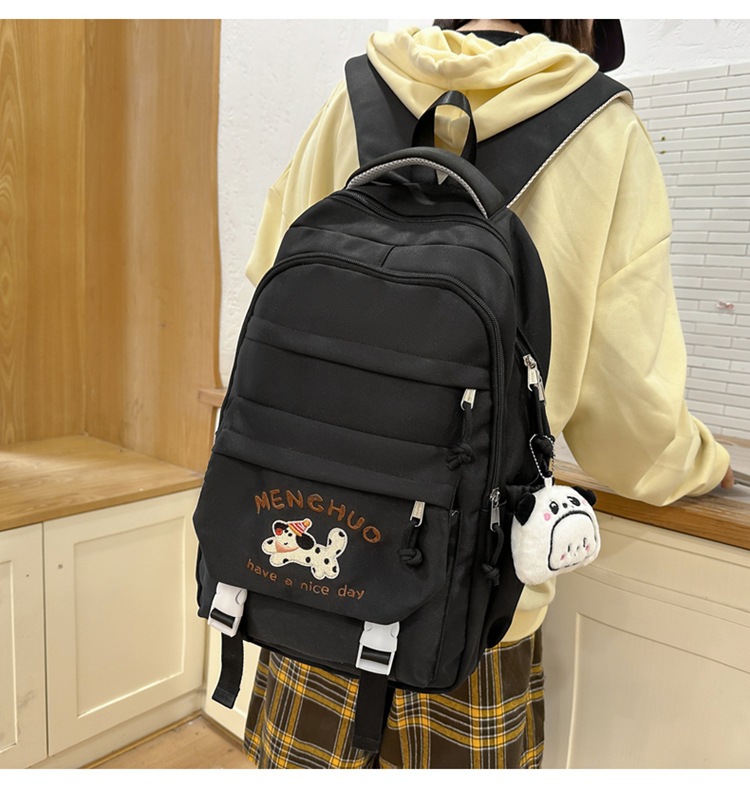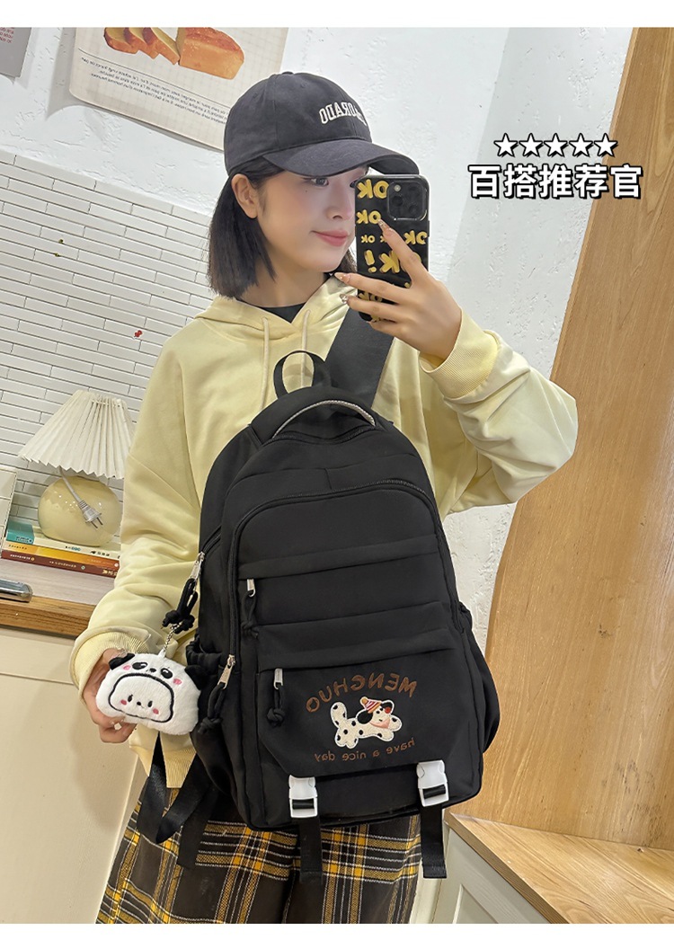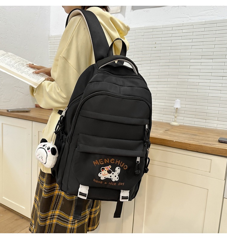 새 만화 강아지 수놓은 스쿨백 고부가가치 한국식 프레피 스타일 멀티 컴파트먼트 백팩 중학생