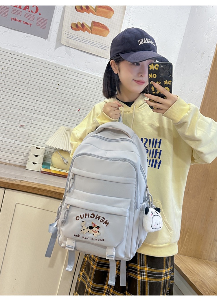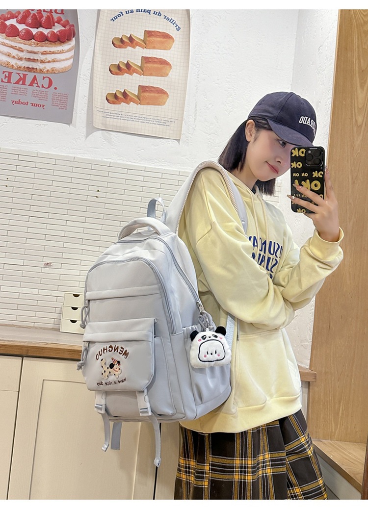 새 만화 강아지 수놓은 스쿨백 고부가가치 한국식 프레피 스타일 멀티 컴파트먼트 백팩 중학생스토어 가기