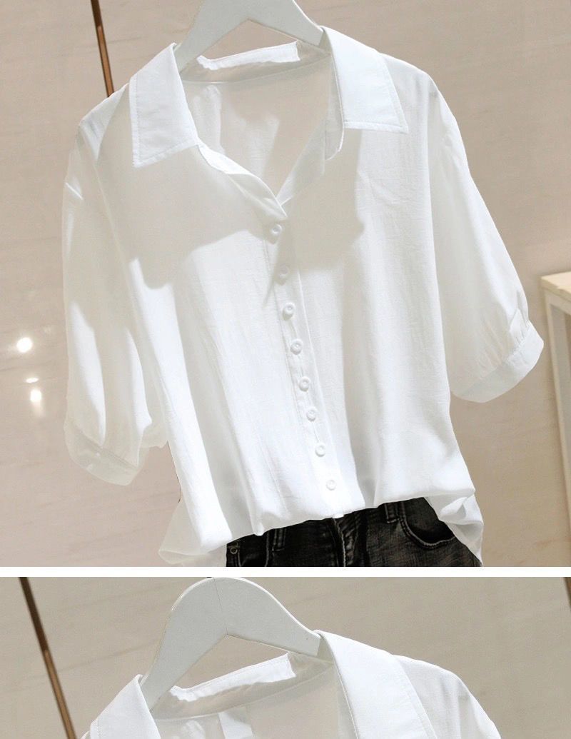 V 넥 반팔 셔츠 여성 여름 얇은 2024 새로운 한국 버전의 느슨한 플러스 사이즈 슬리밍 디자인 감각 틈새 도매스토어 가기