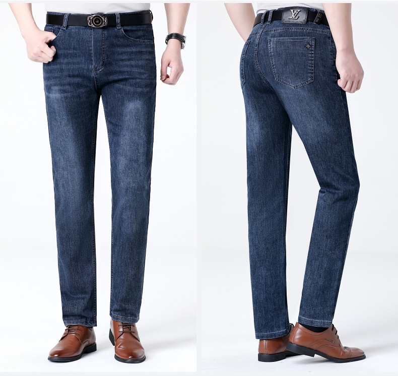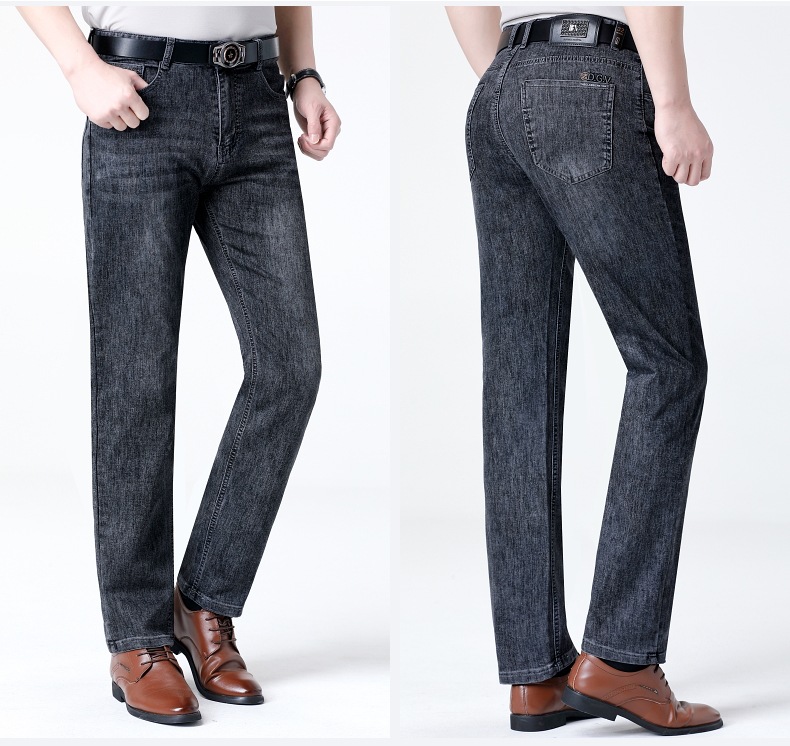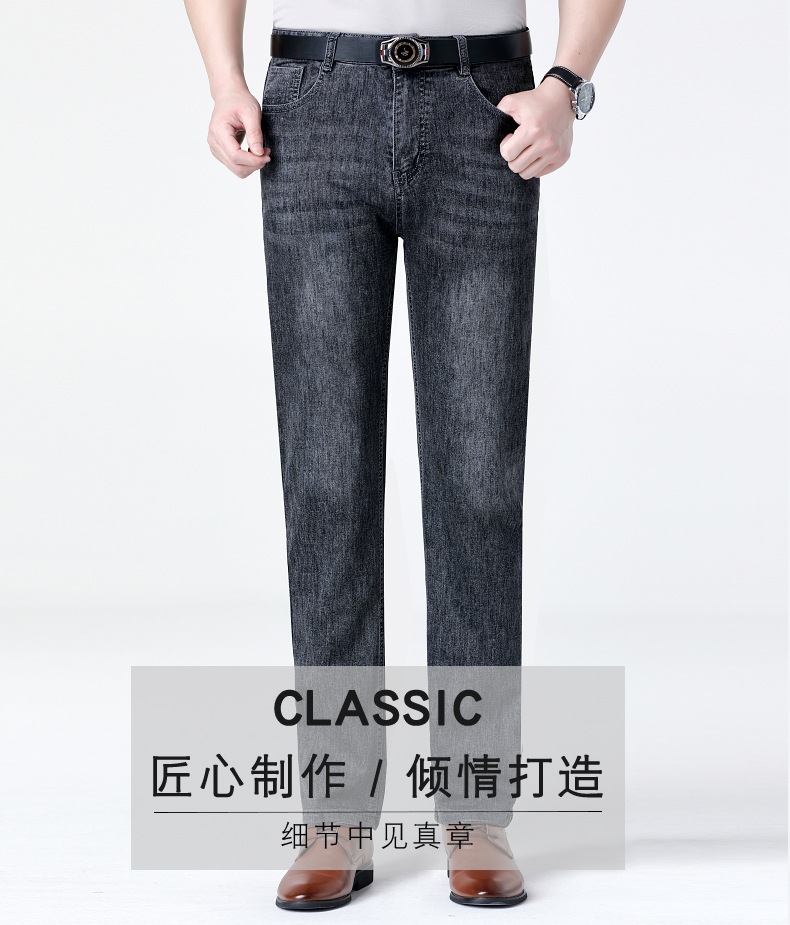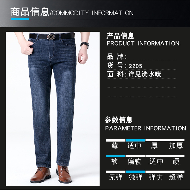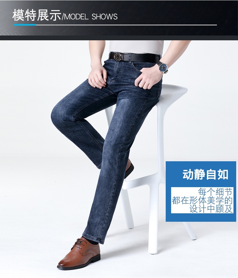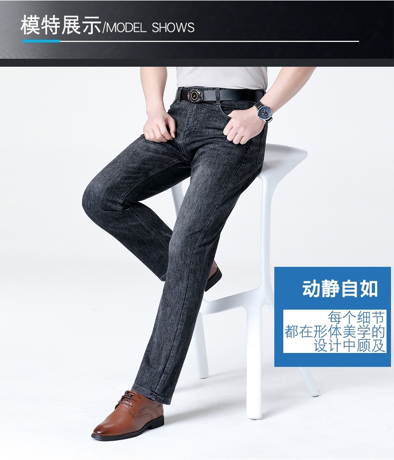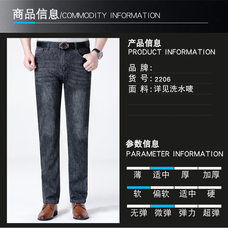 가벼운 럭셔리 정품 하이 엔드 봄과 가을 얇은 남자의 작은 스트레이트 바지 마이크로 탄성 비즈니스 캐주얼 중년 청바지 바지스토어 가기