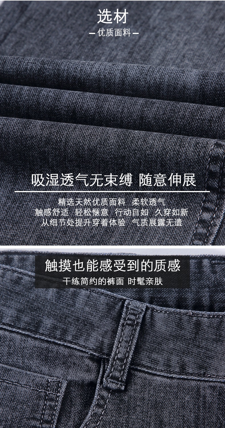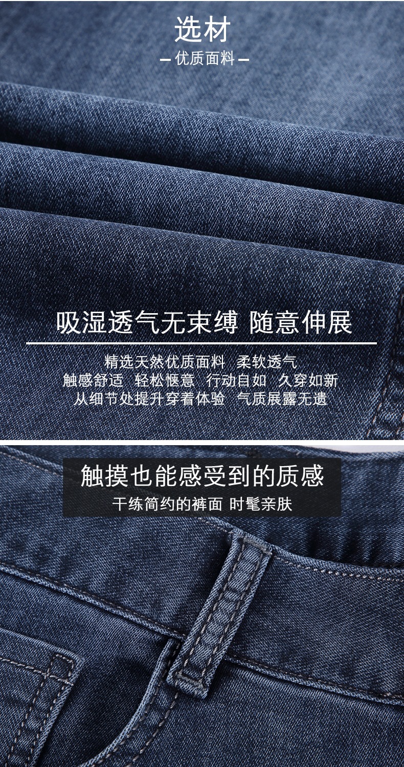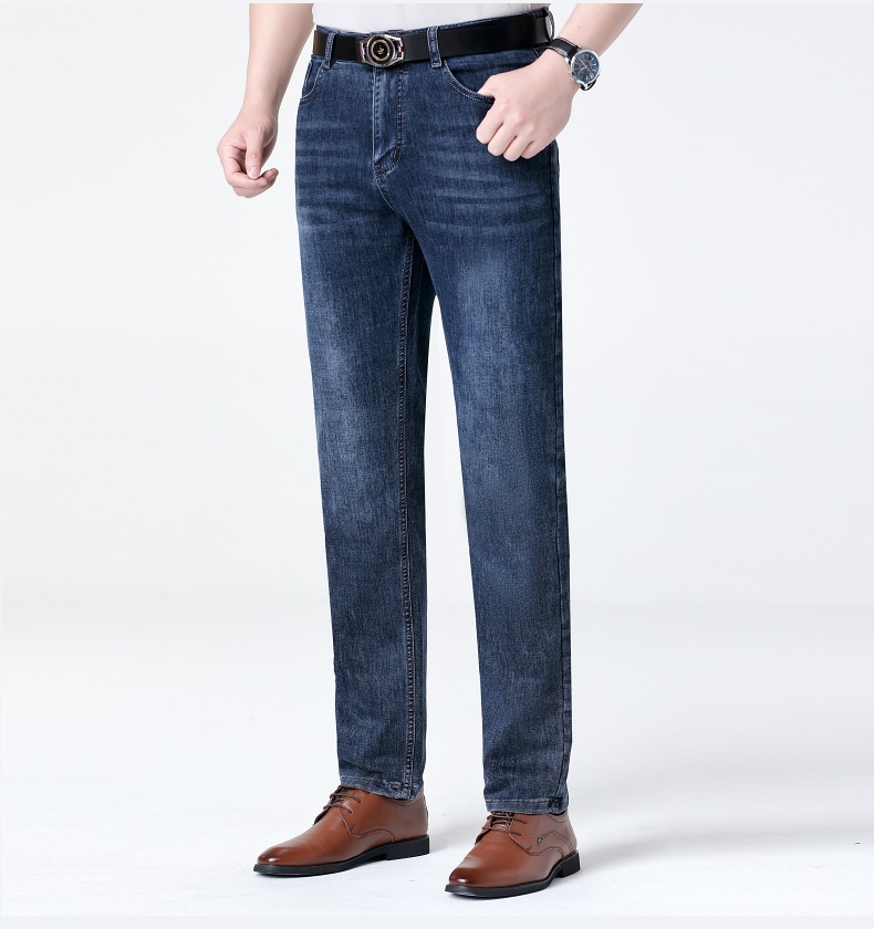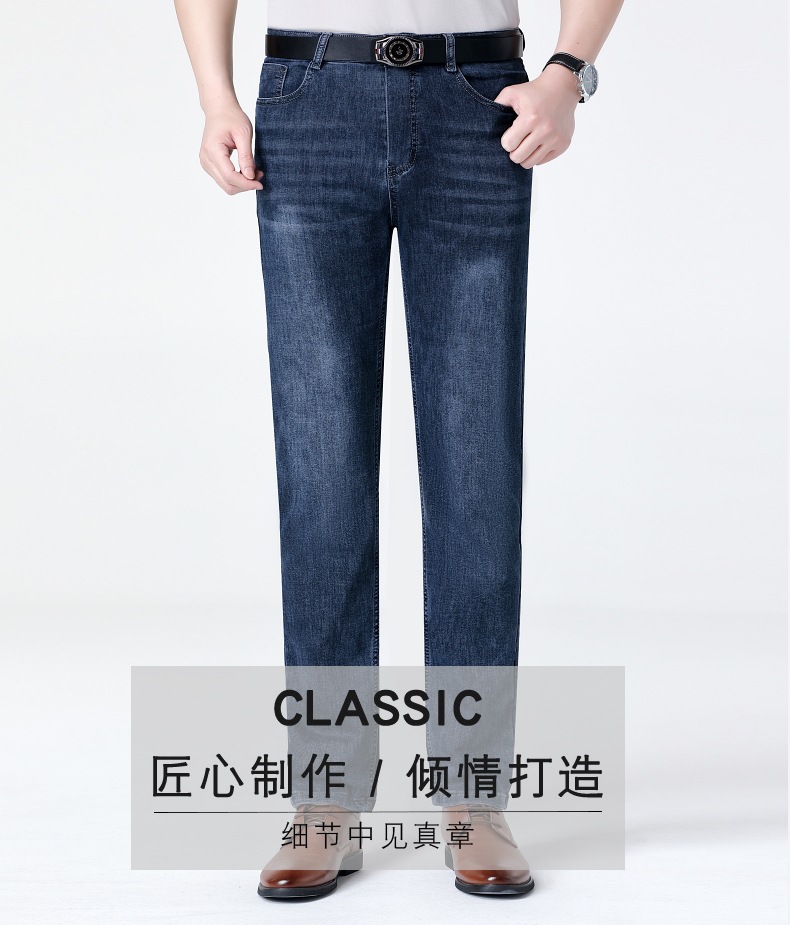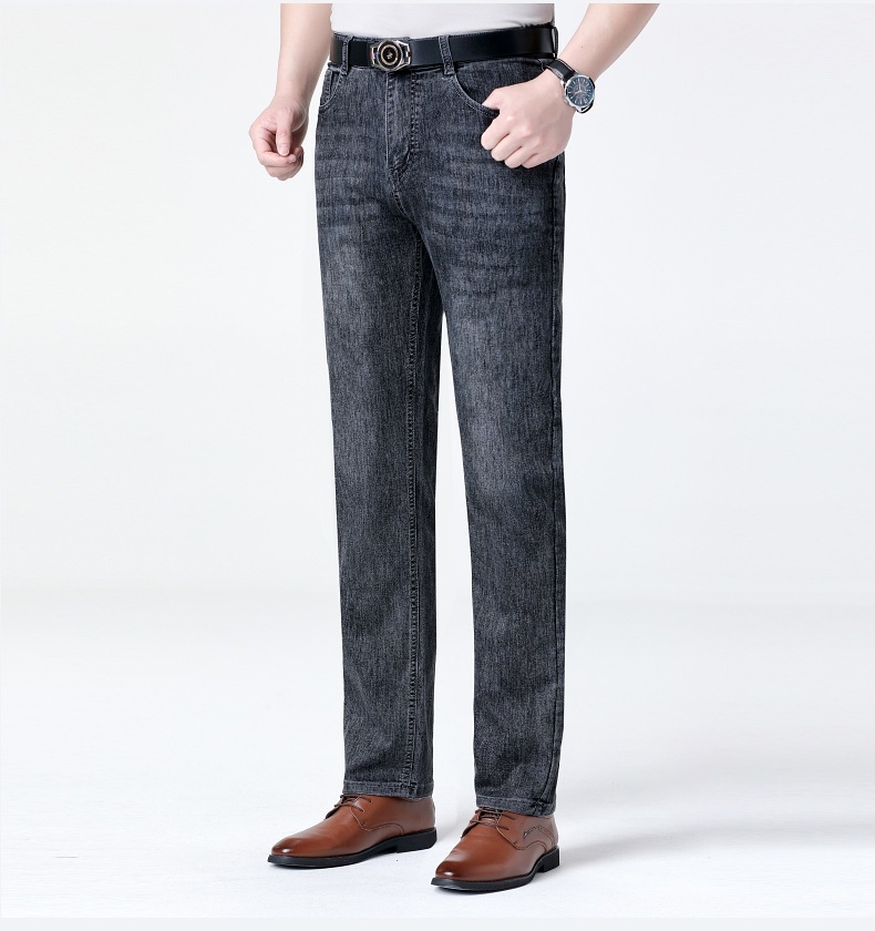 가벼운 럭셔리 정품 하이 엔드 봄과 가을 얇은 남자의 작은 스트레이트 바지 마이크로 탄성 비즈니스 캐주얼 중년 청바지 바지스토어 가기
