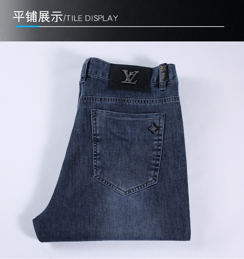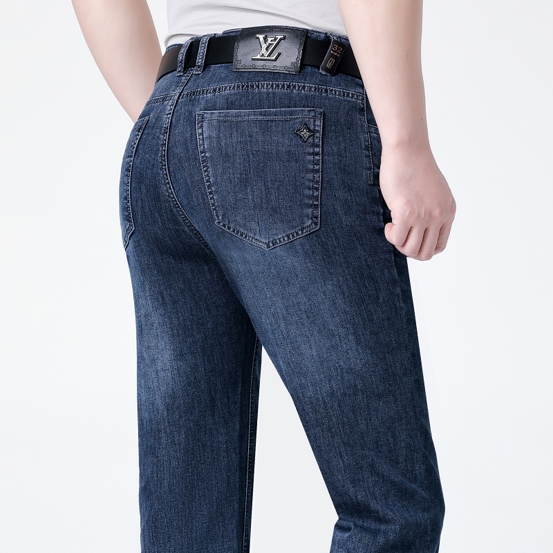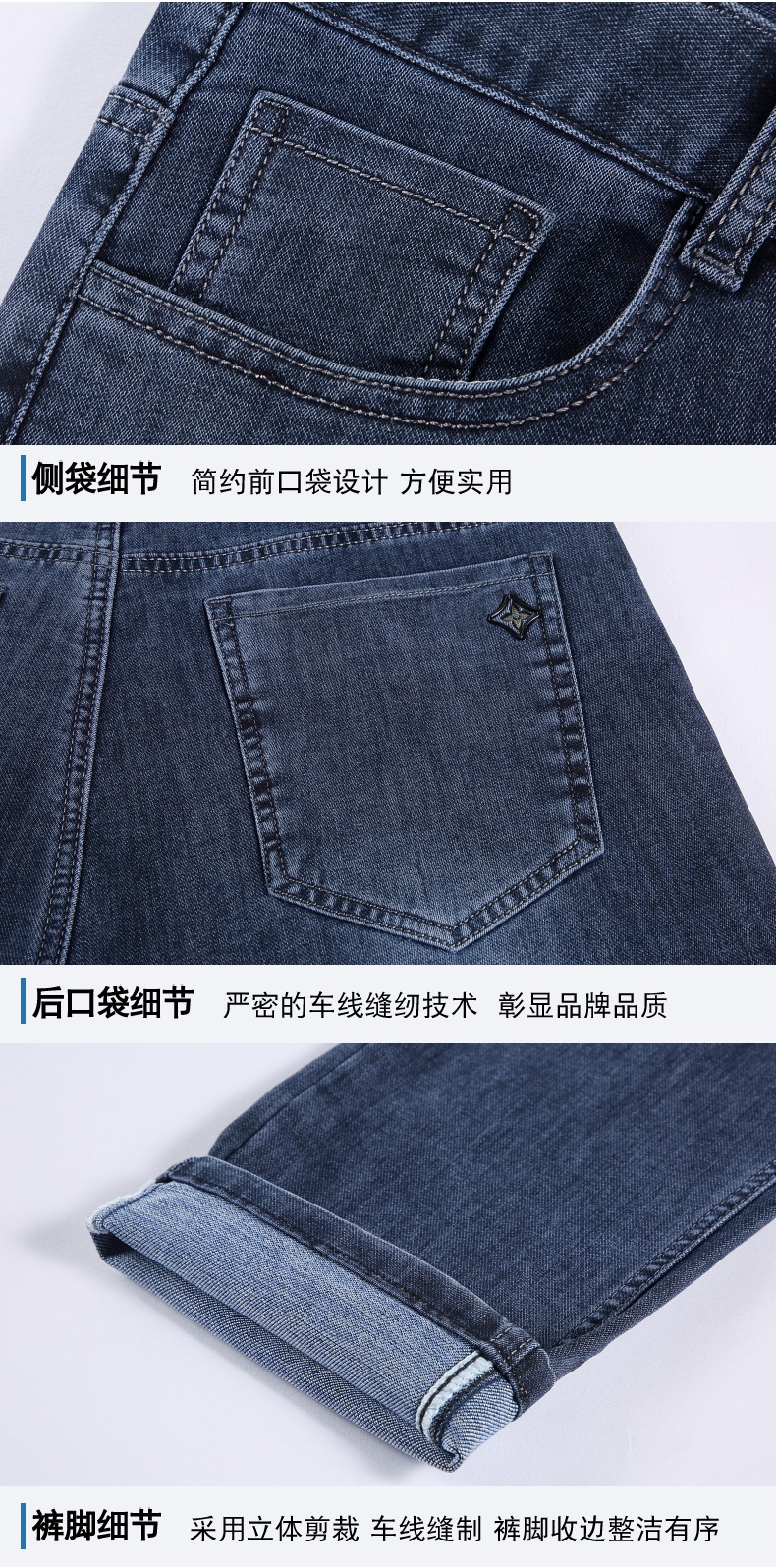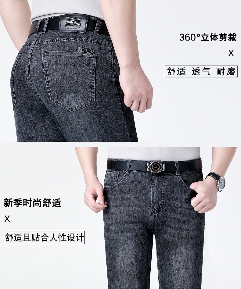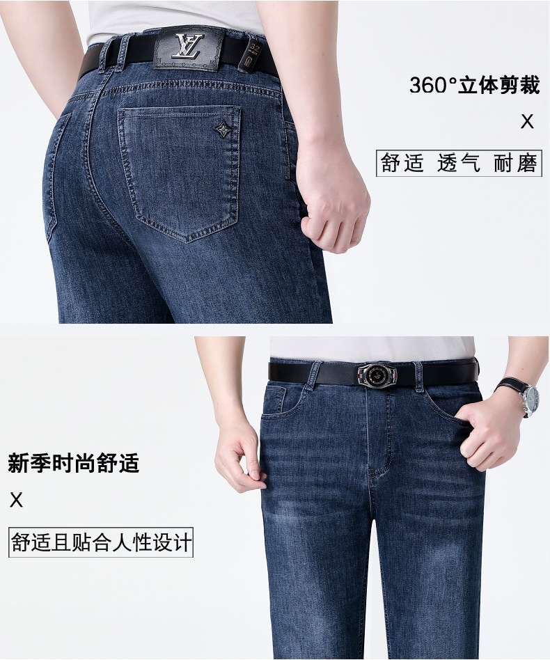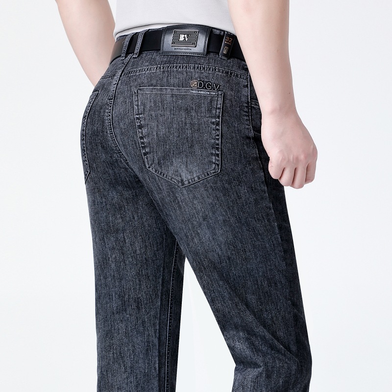 가벼운 럭셔리 정품 하이 엔드 봄과 가을 얇은 남자의 작은 스트레이트 바지 마이크로 탄성 비즈니스 캐주얼 중년 청바지 바지스토어 가기