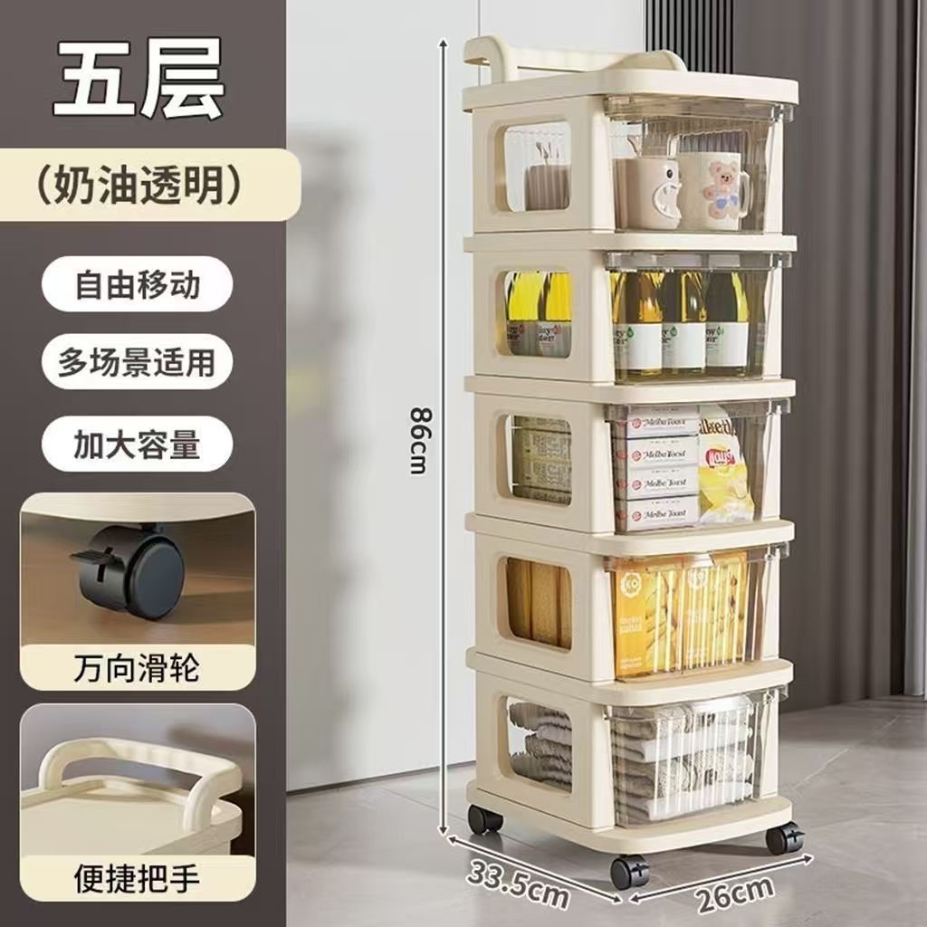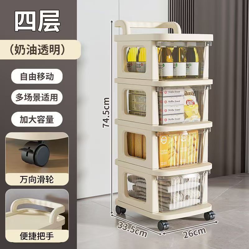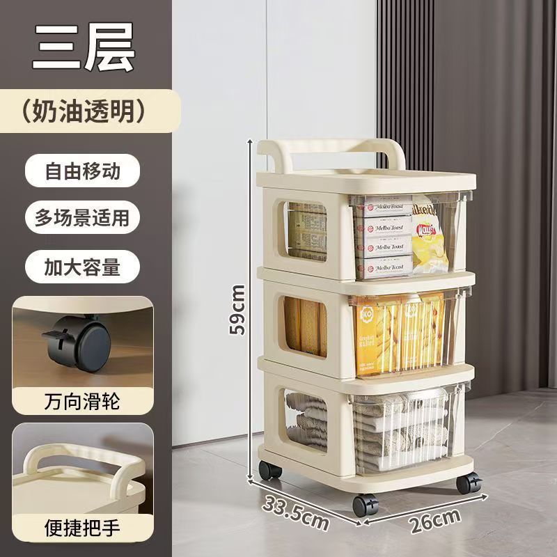 다층 트롤리 스토리지 랙 크림 스타일 침대 옆 캐비닛 바퀴 달린 모바일 바닥 식 서랍 형 스낵 장난감 스토리지 랙