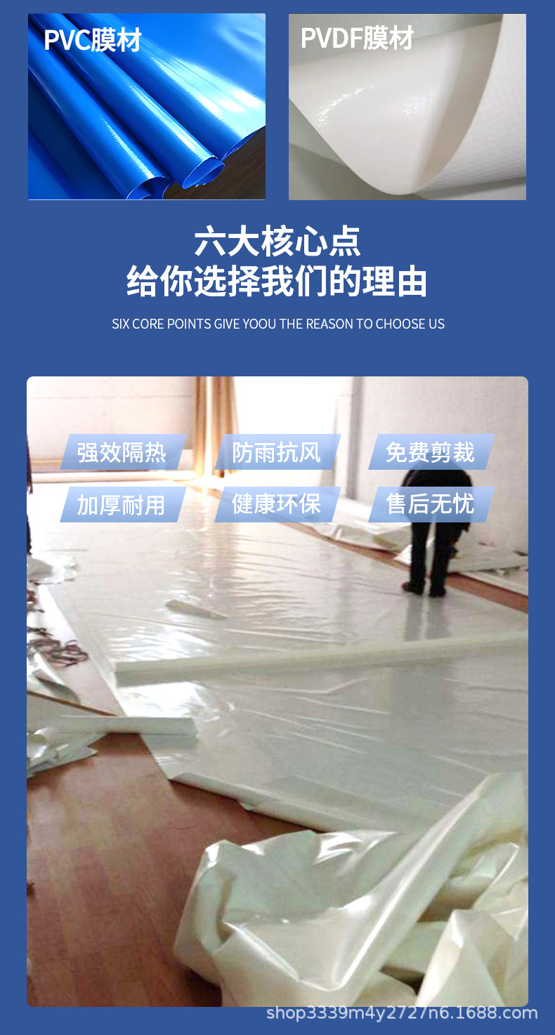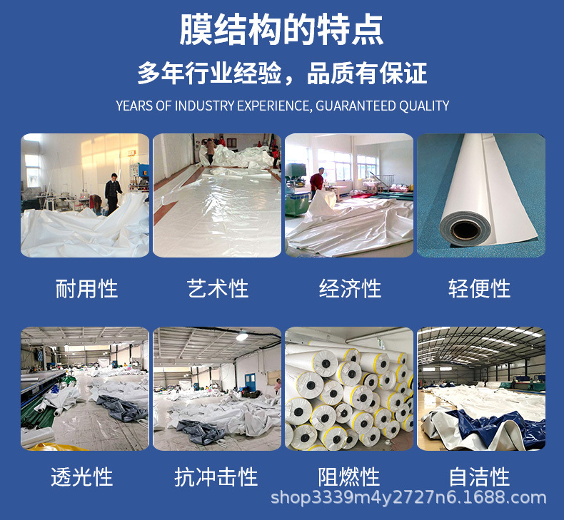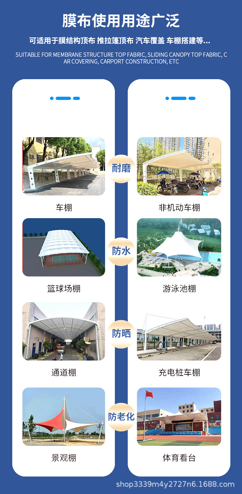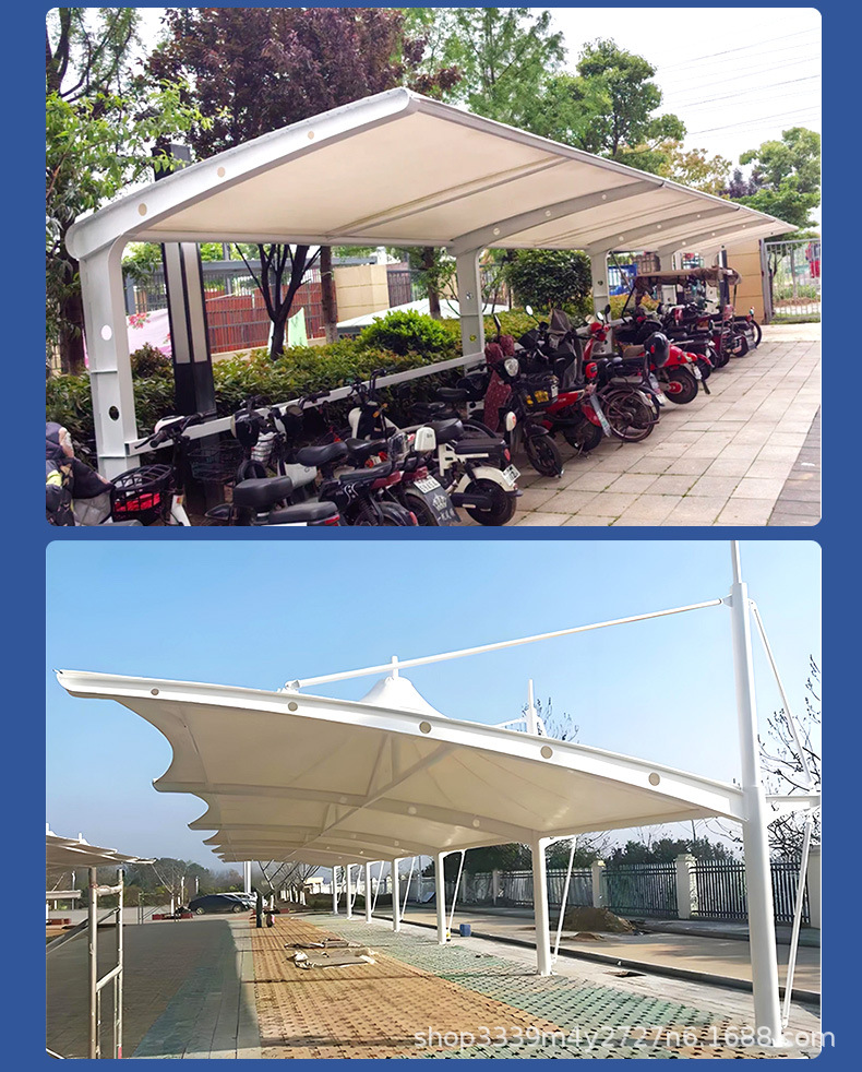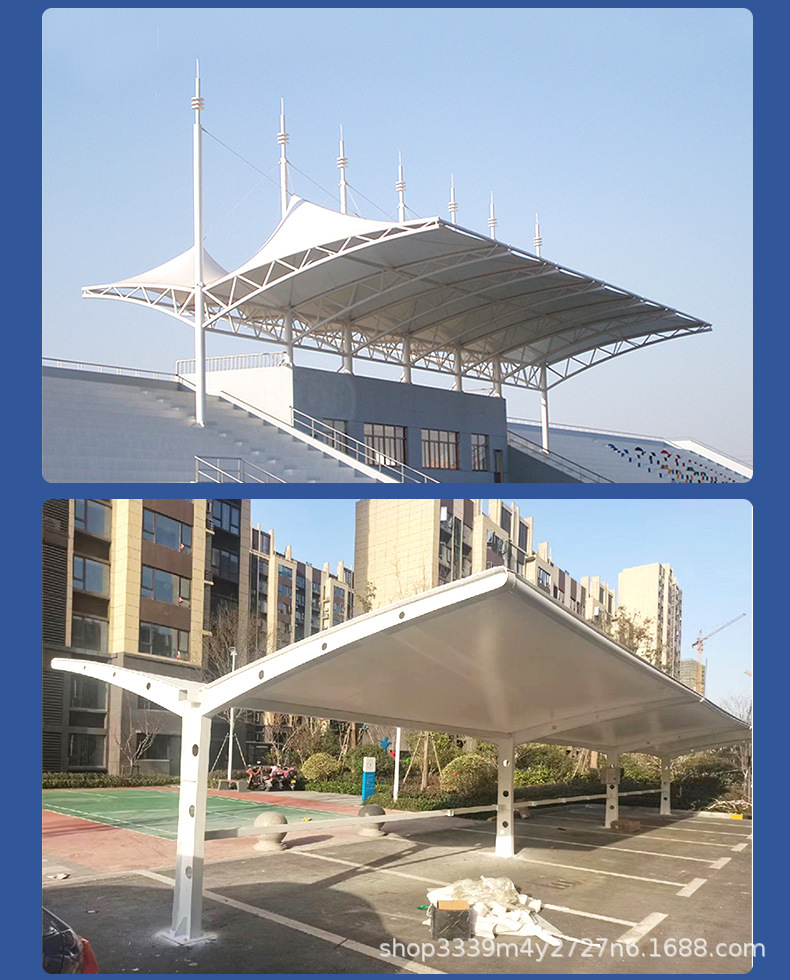 Pvdf 멤브레인 구조 타포린 주차 창고 멤브레인 천 자동차 창고 맞춤형 가공 pvc 멤브레인 재료 인장 막 차양 비 천스토어 가기