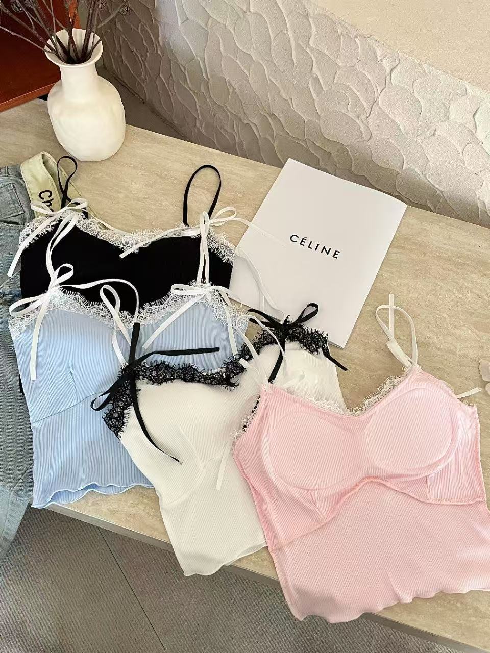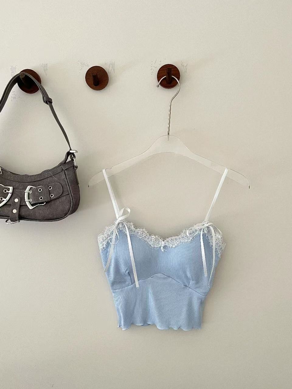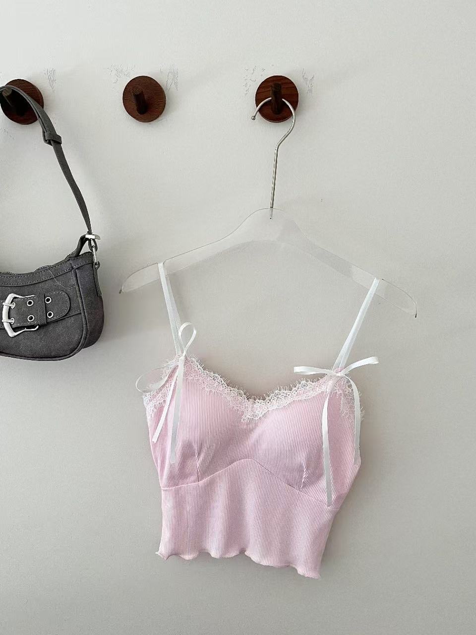 여름 한국 스타일 달콤한 캔디 컬러 섹시한 가슴은 가슴 패드 외부와 함께 레이스 슬링 조끼스토어 가기