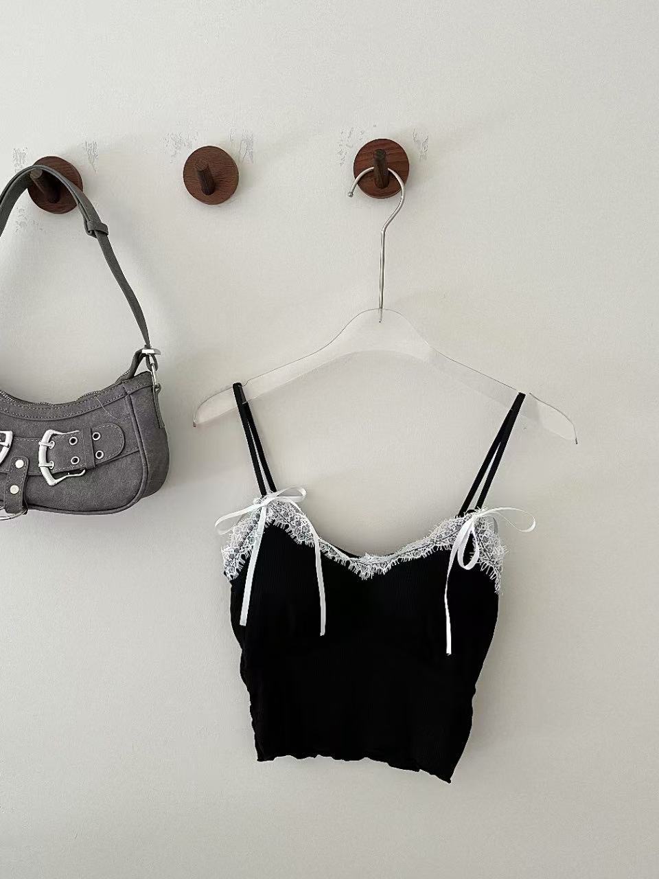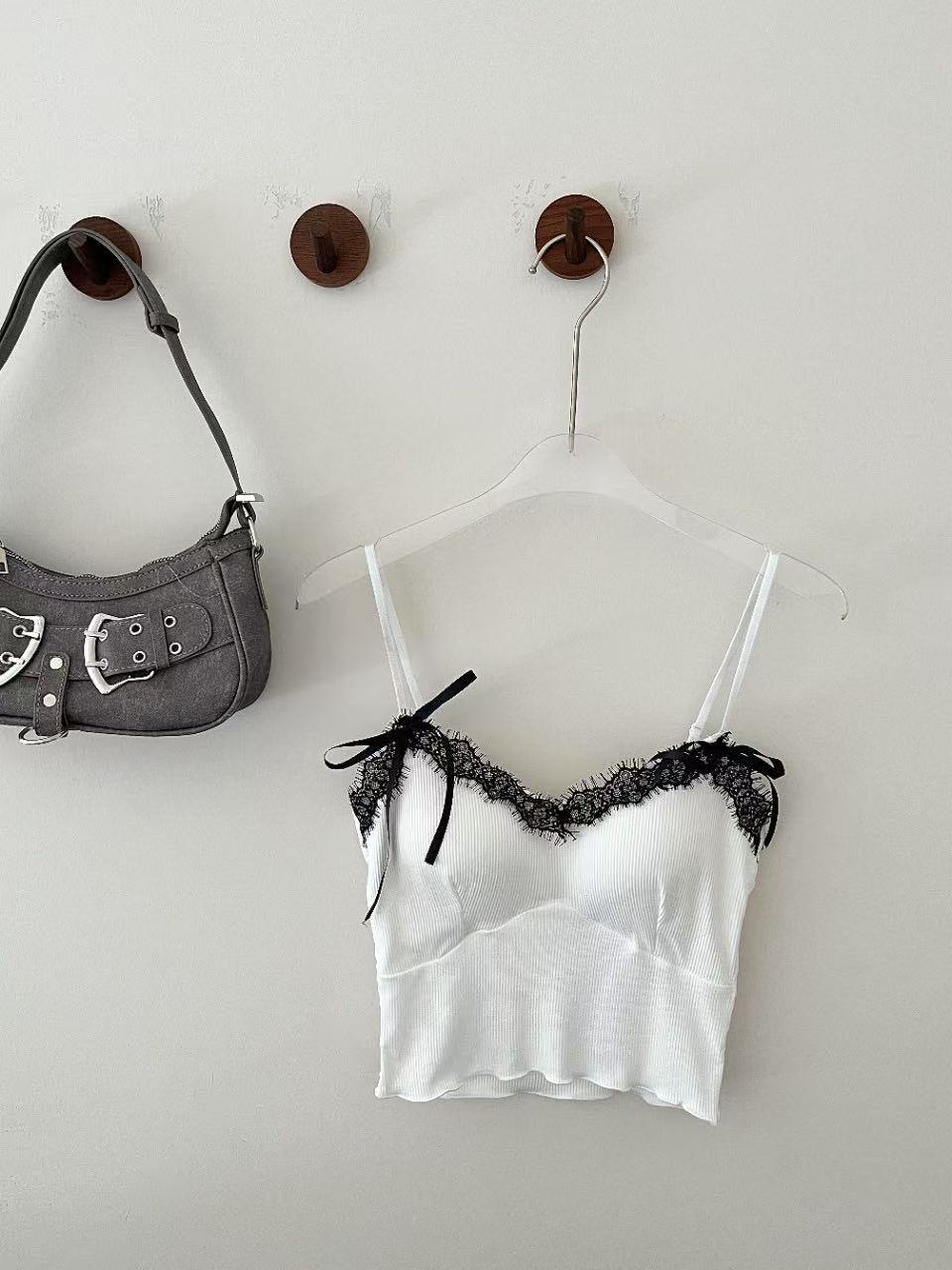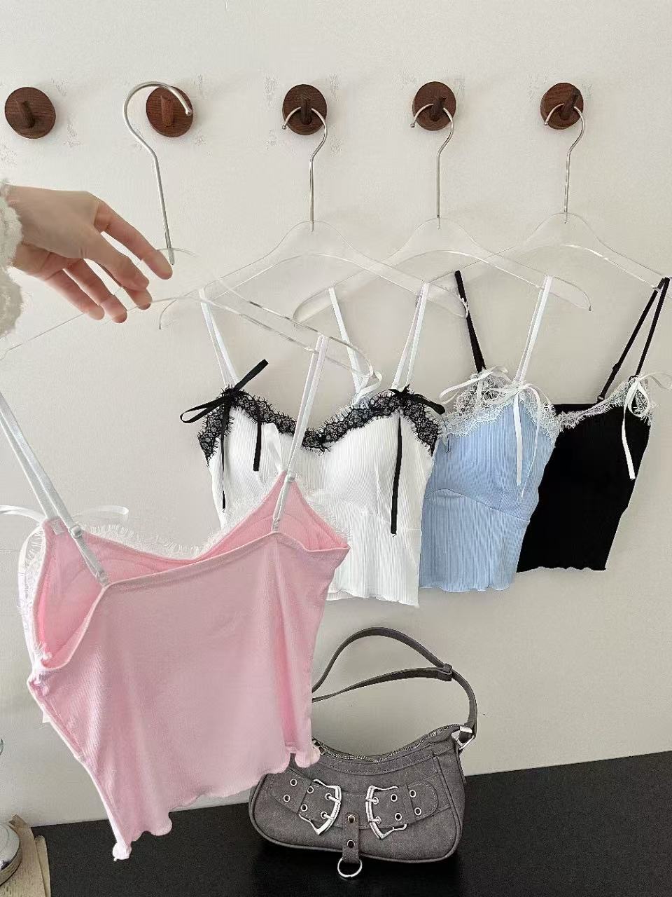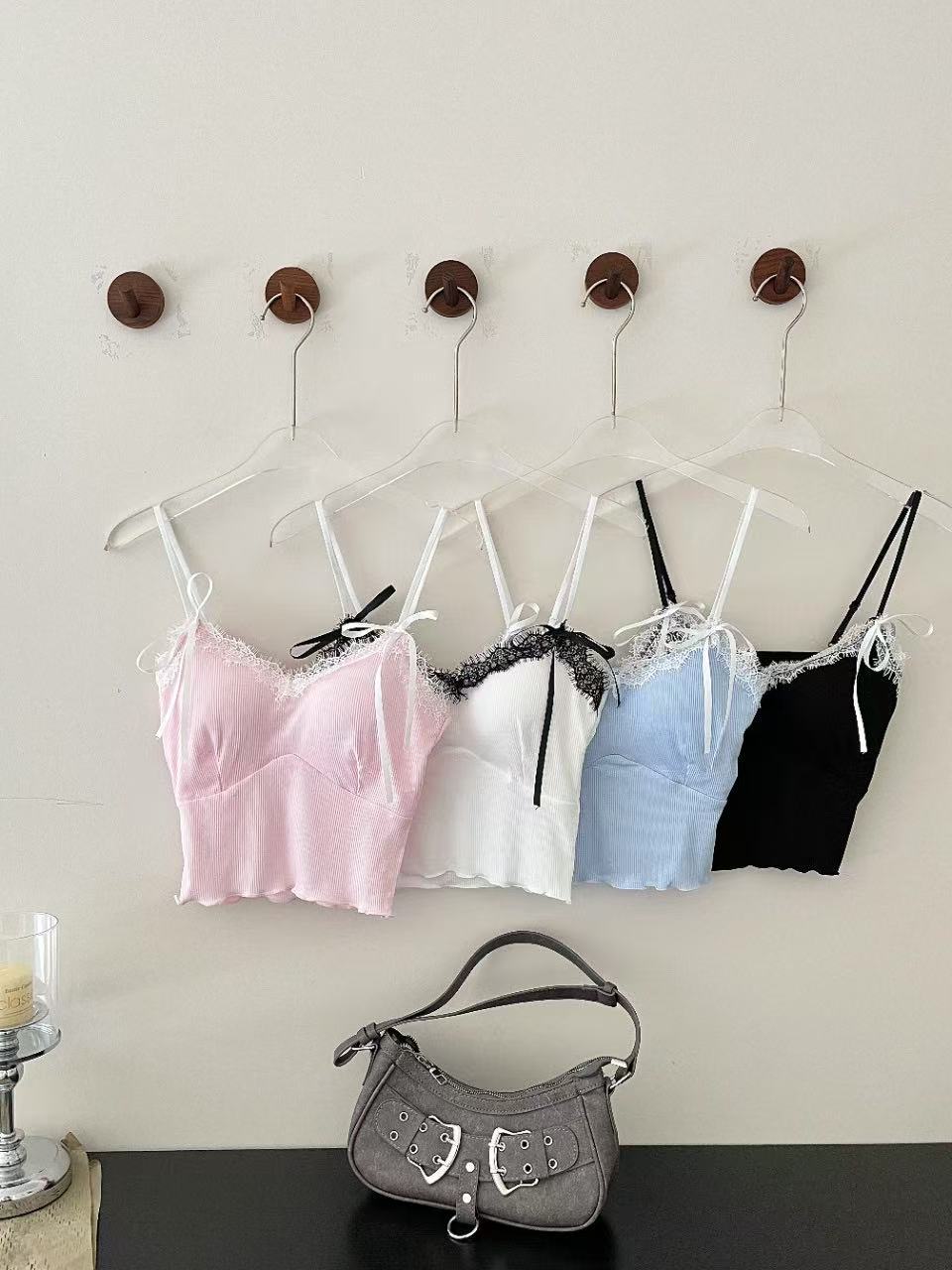 여름 한국 스타일 달콤한 캔디 컬러 섹시한 가슴은 가슴 패드 외부와 함께 레이스 슬링 조끼스토어 가기