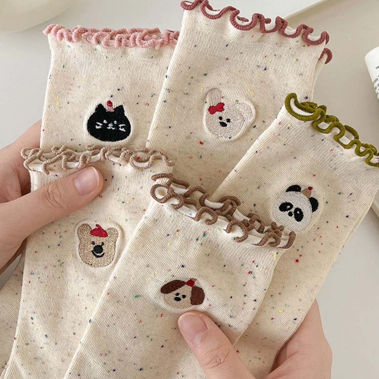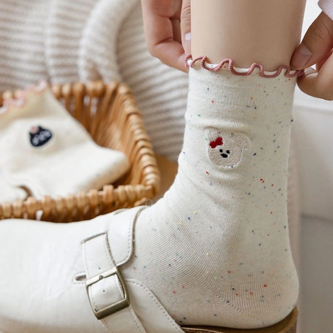 트렌디 한 양말 포인트 원사 러플 뼈없는 귀여운 자수 문 양말 가을 겨울 인터넷 여성 양말에 대한 인기있는 한국어 스택