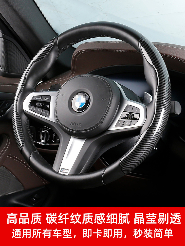 물 전송 탄소 섬유 패턴 스티어링 휠 커버 물 전송 스티어링 휠 핸들 커버 카드 커버 사계절 유니버설 핏 미끄럼 사계절스토어 가기