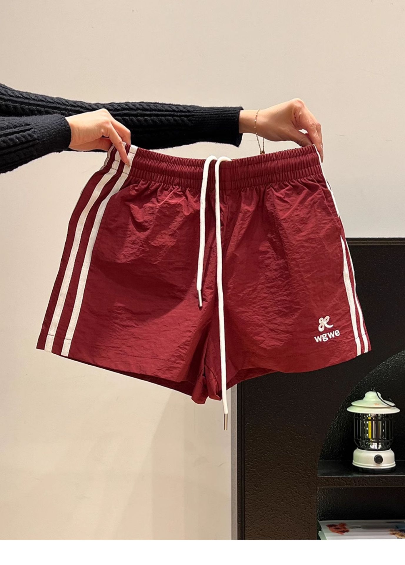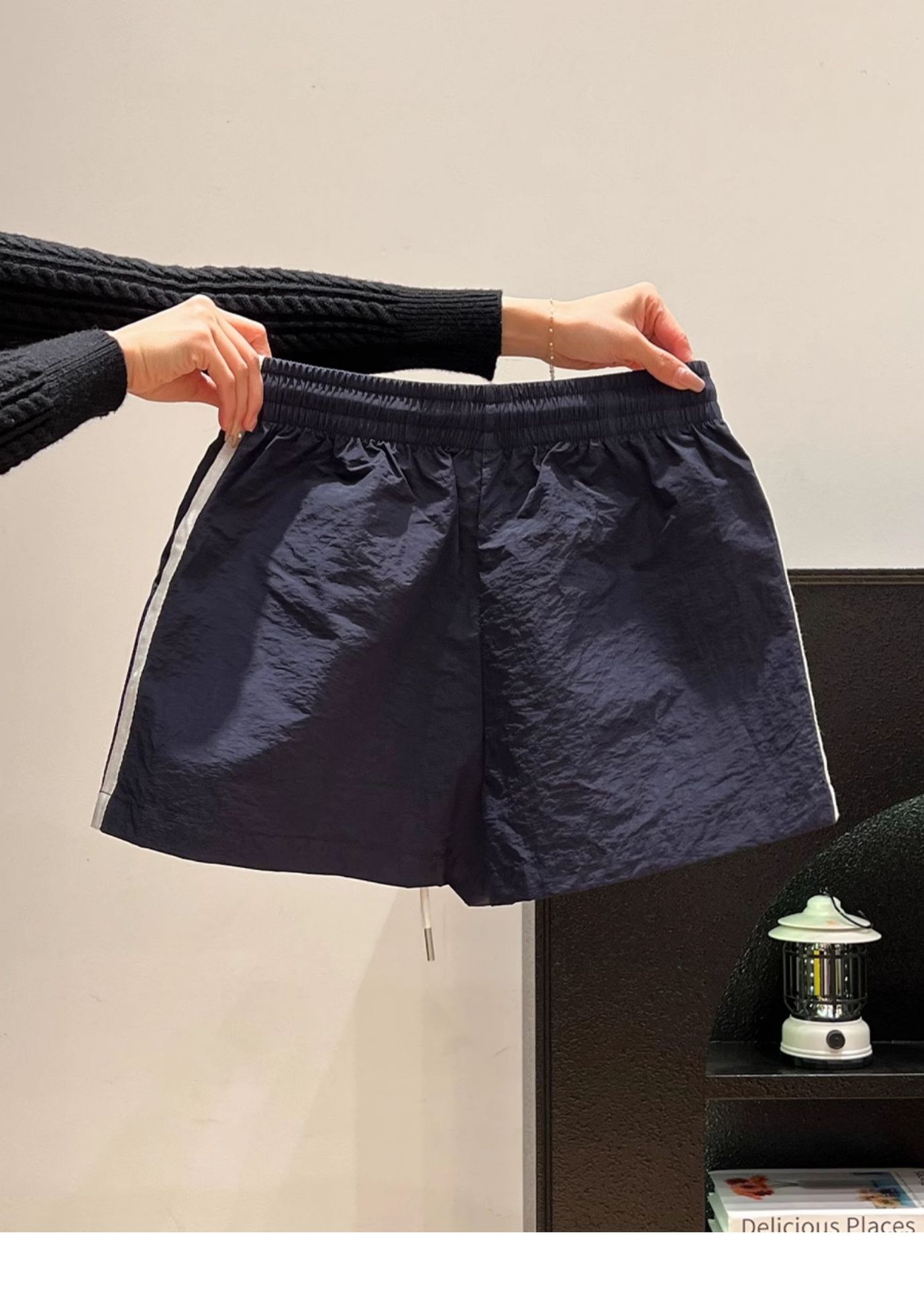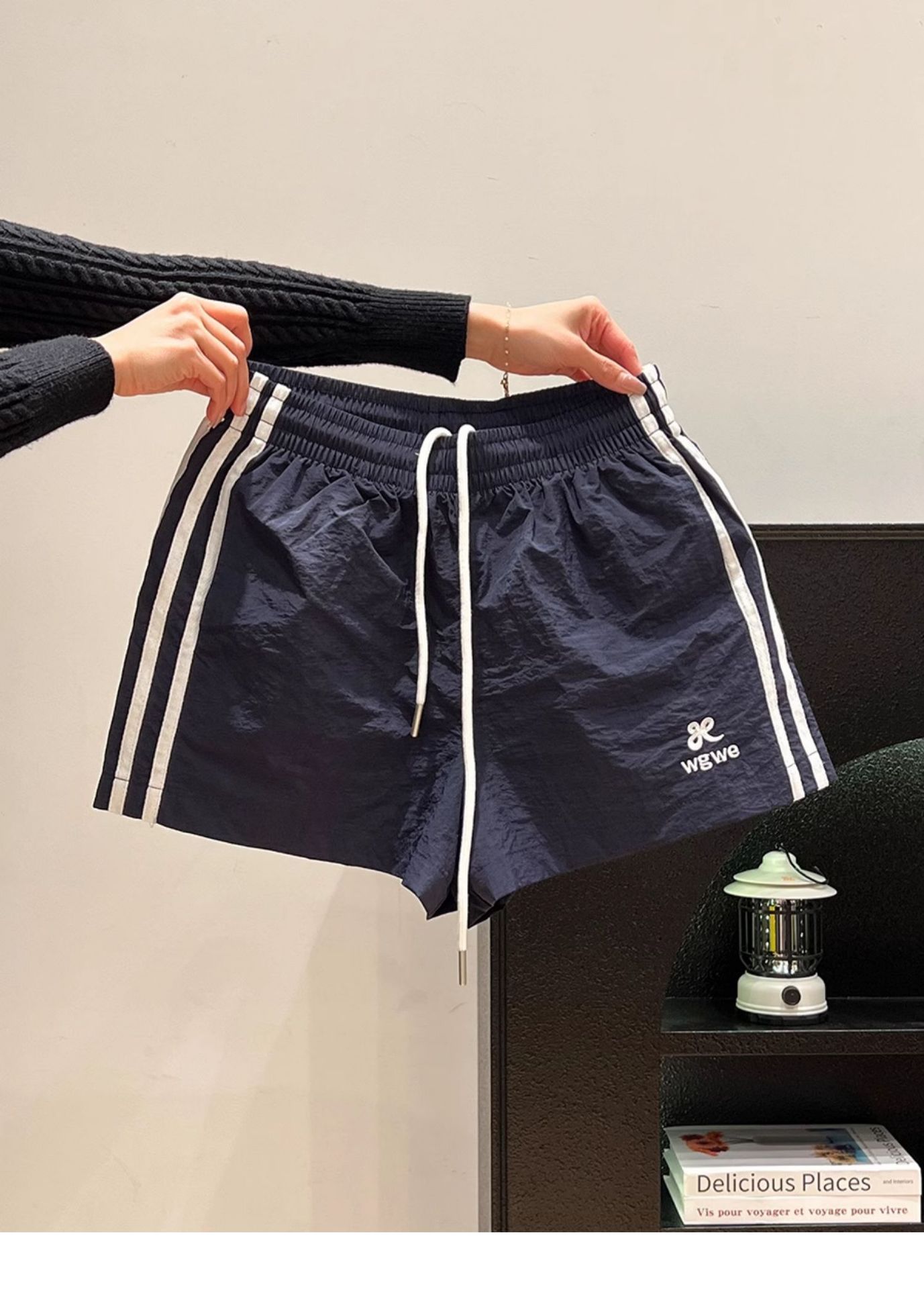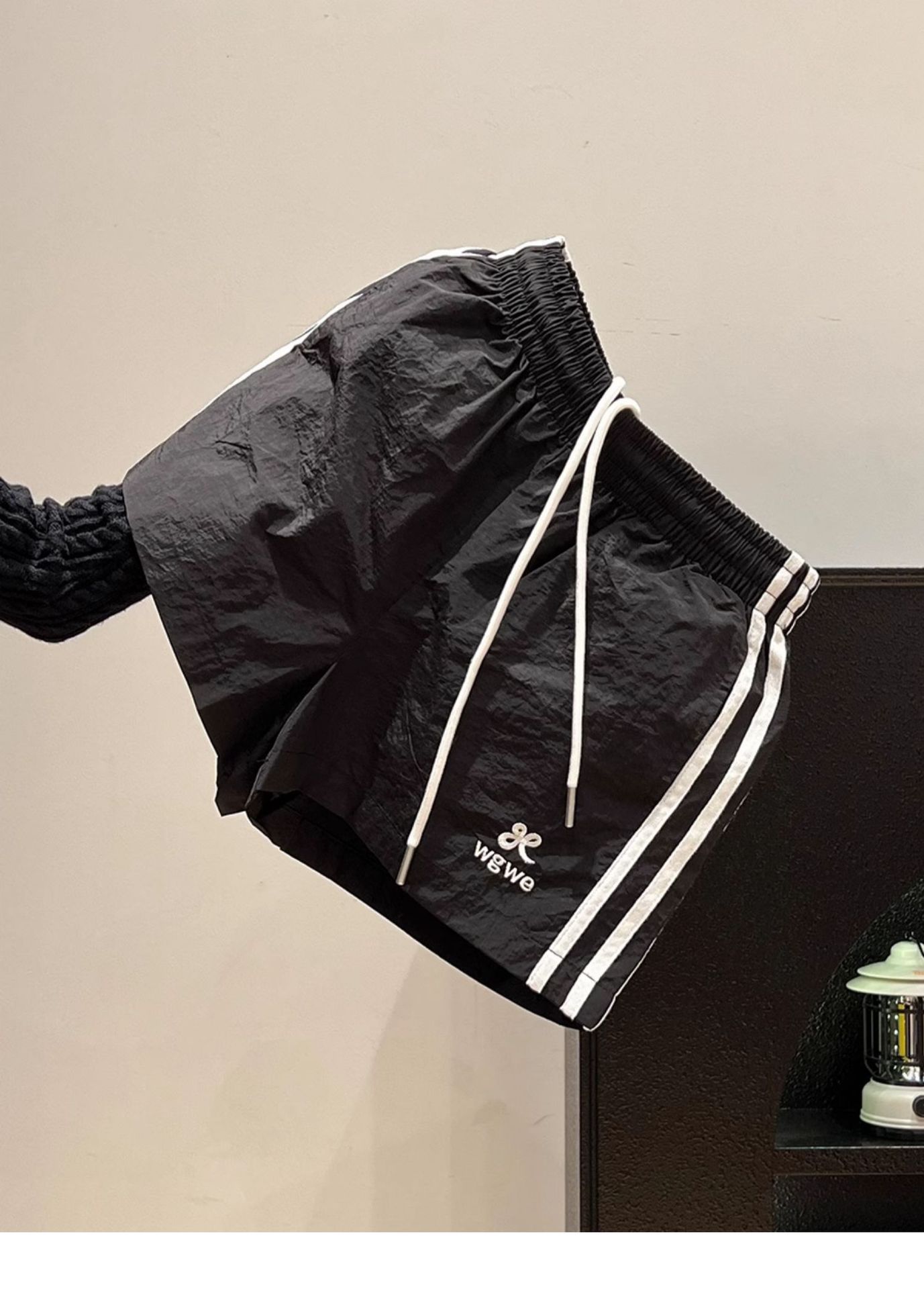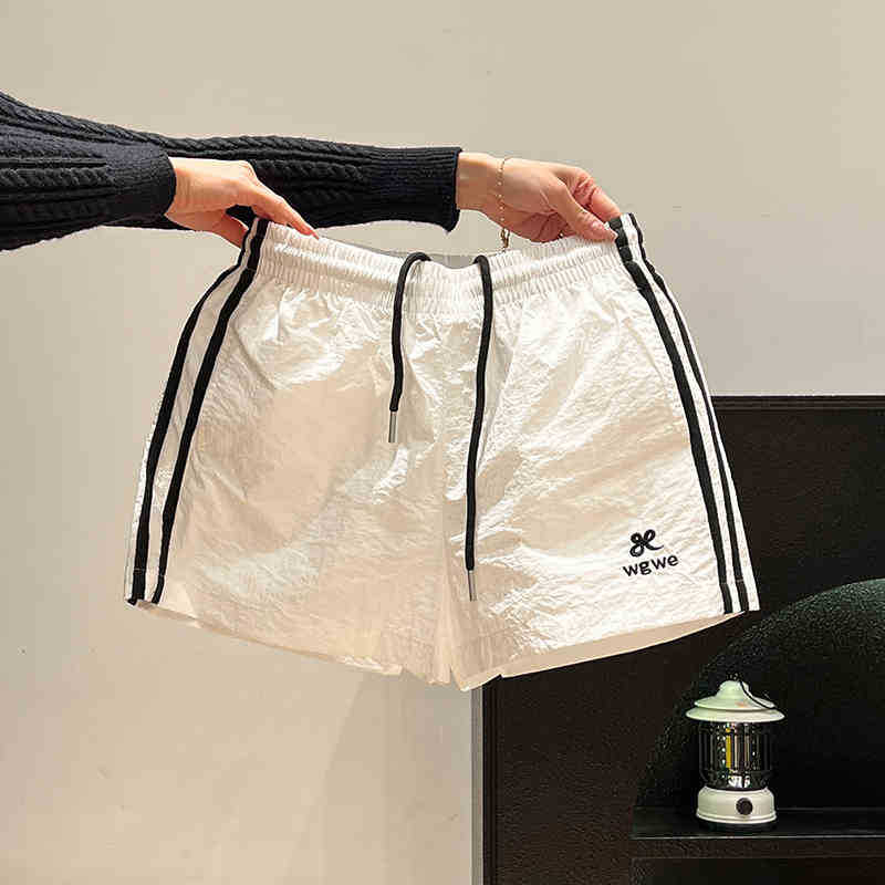 아메리칸 스타일 3 바 드로우 스트링 스포츠 반바지 여성 2025 년 봄과 여름 새로운 디자인 센스 높은 허리 슬리밍 캐주얼 바지