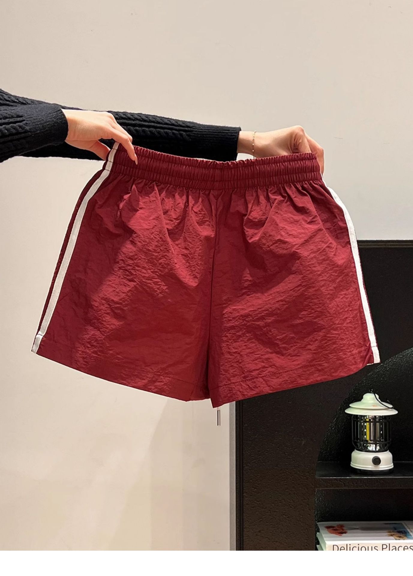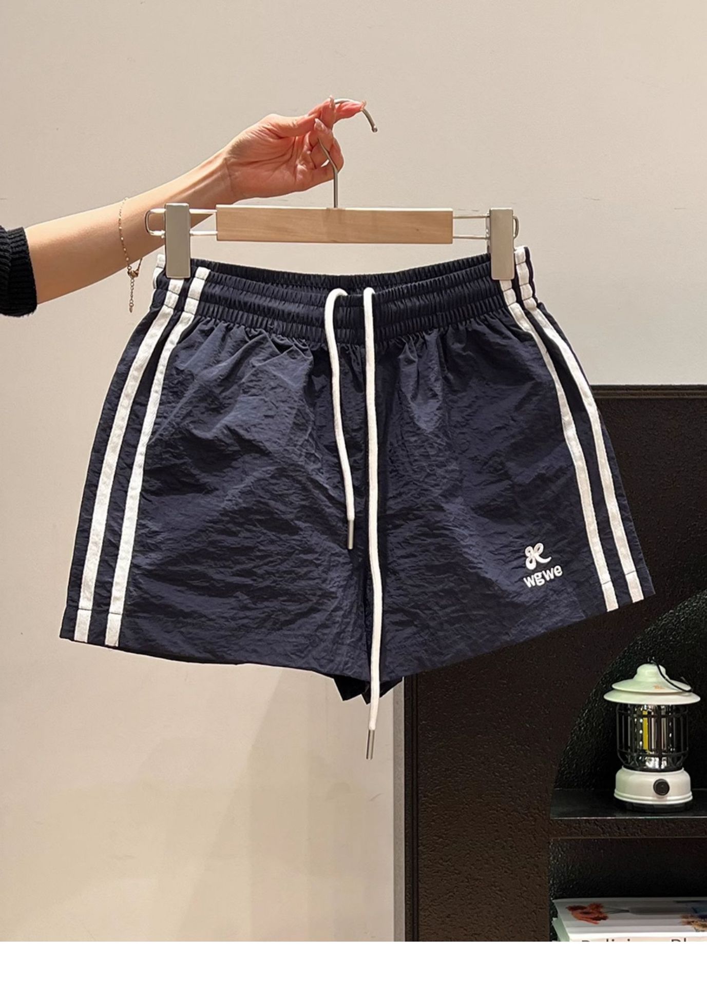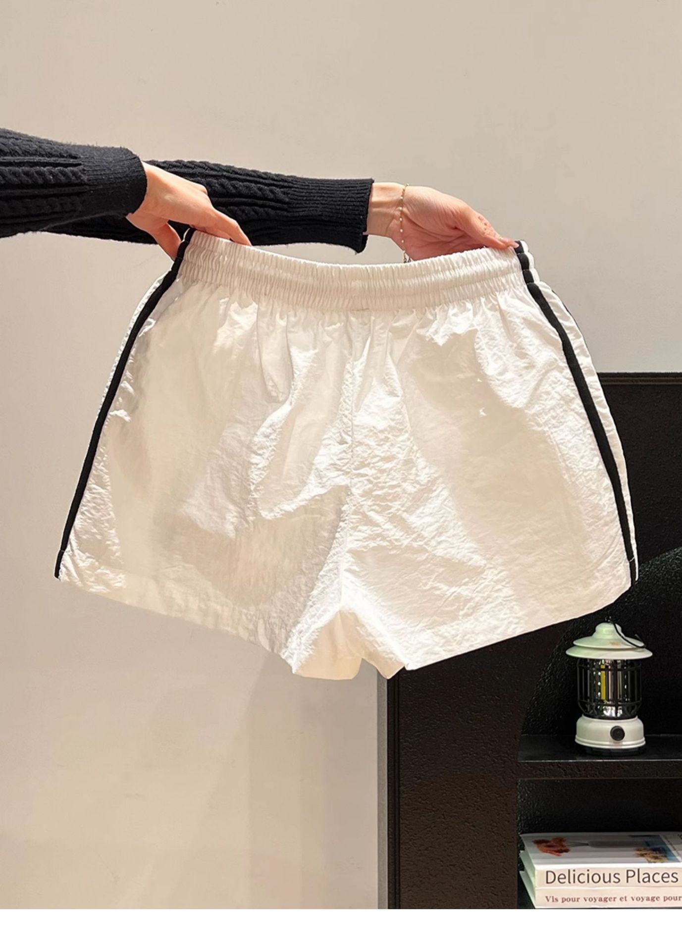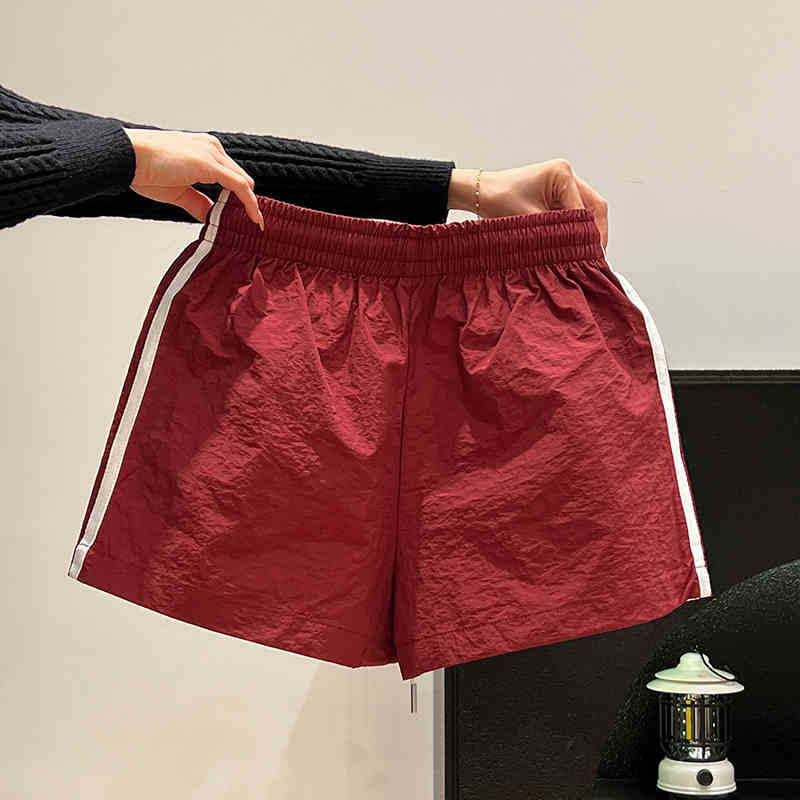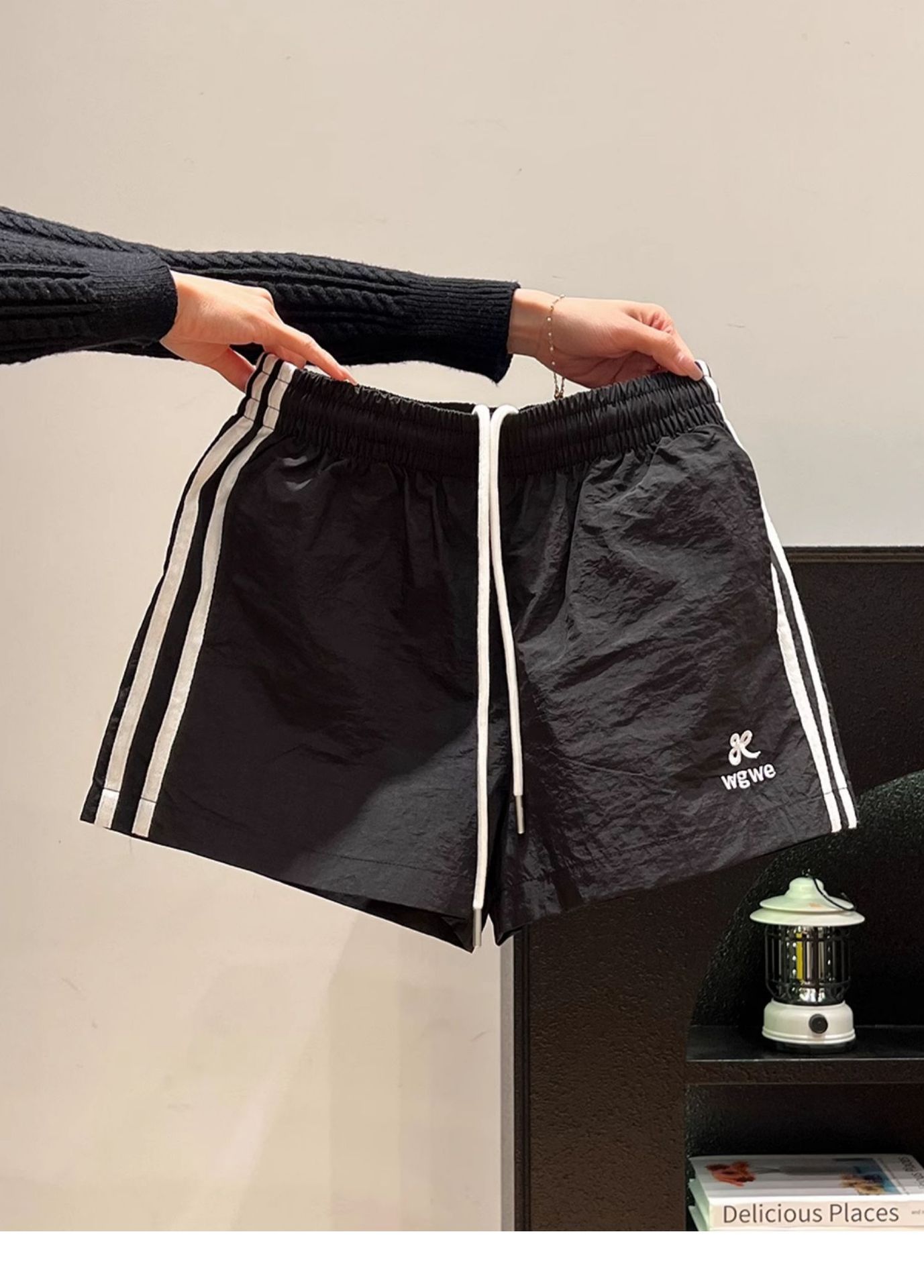 아메리칸 스타일 3 바 드로우 스트링 스포츠 반바지 여성 2025 년 봄과 여름 새로운 디자인 센스 높은 허리 슬리밍 캐주얼 바지