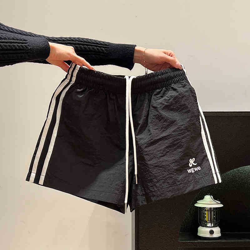 아메리칸 스타일 3 바 드로우 스트링 스포츠 반바지 여성 2025 년 봄과 여름 새로운 디자인 센스 높은 허리 슬리밍 캐주얼 바지스토어 가기