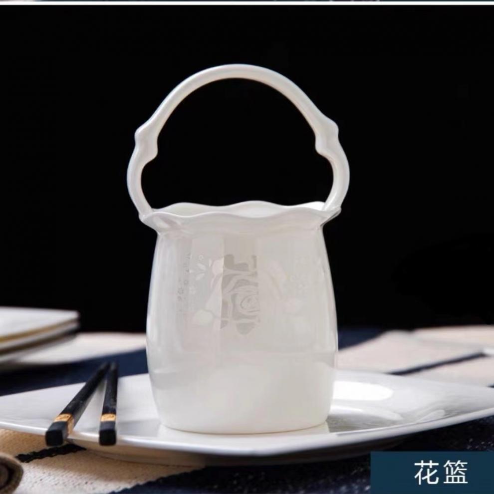 그릇 가정용 Jingdezhen 뼈 중국 식기 먹는 그릇 접시 화이트 로즈 주방 뚜껑 간단한 전자 레인지