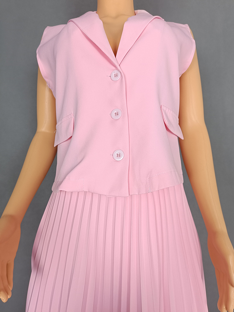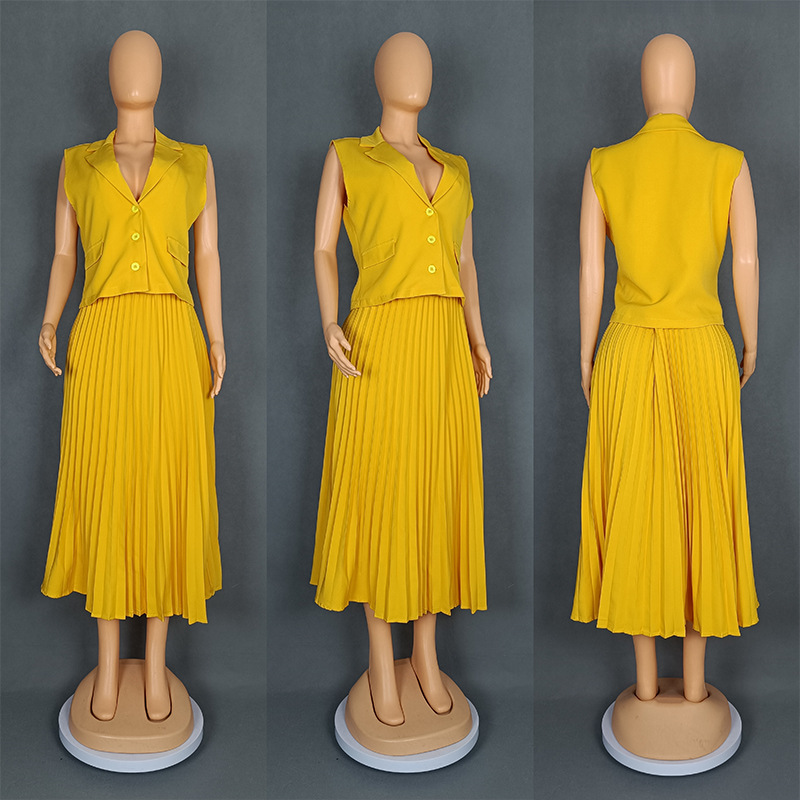 유럽과 미국 국경 여성 2025 새로운 기질 세트 칼라 싱글 브레스트 조끼 재킷 플리츠 스커트 세트 9056 #