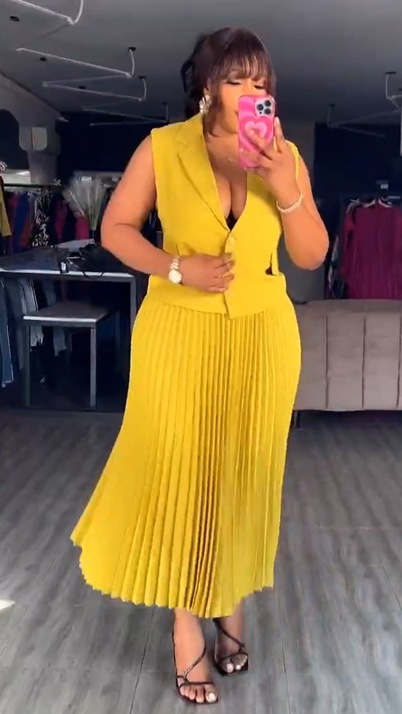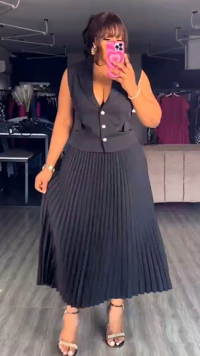 유럽과 미국 국경 여성 2025 새로운 기질 세트 칼라 싱글 브레스트 조끼 재킷 플리츠 스커트 세트 9056 #스토어 가기