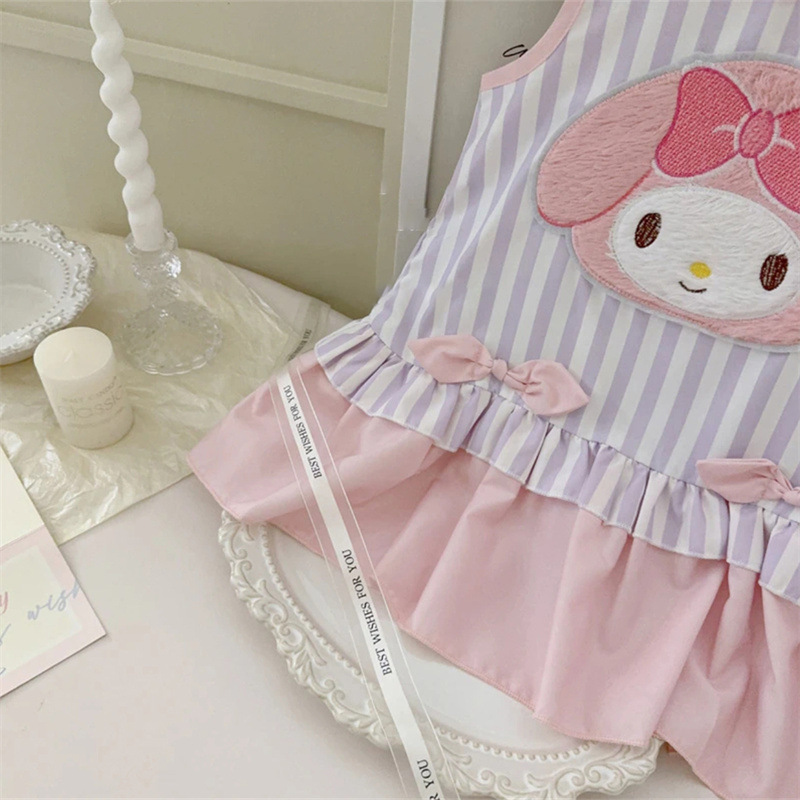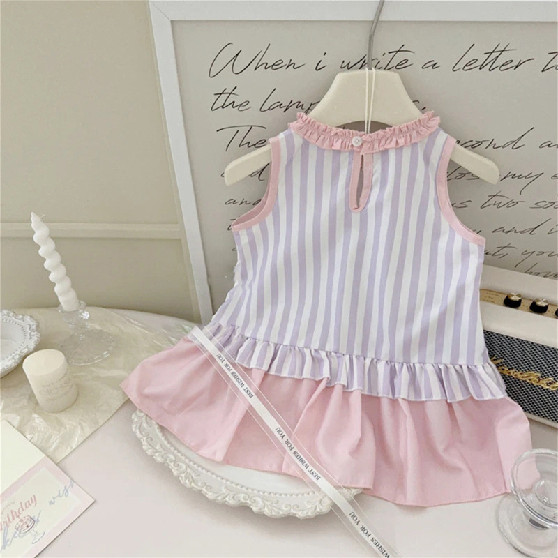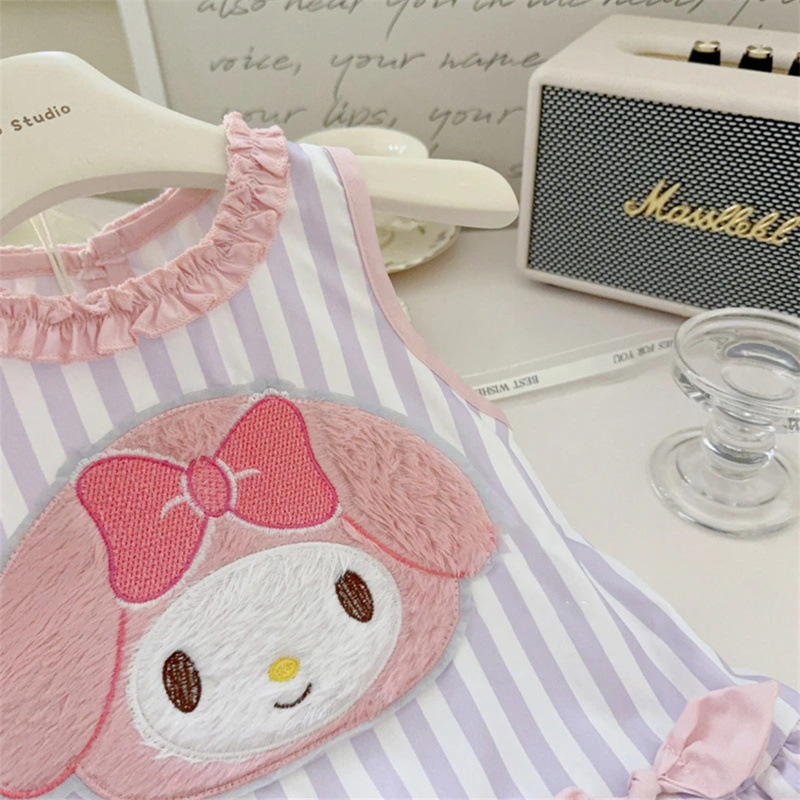 여름 달콤한 귀여운 만화 아기 소녀 핑크 멜로디 줄무늬 원피스 어린이 공주 원피스 조끼 원피스 조수스토어 가기