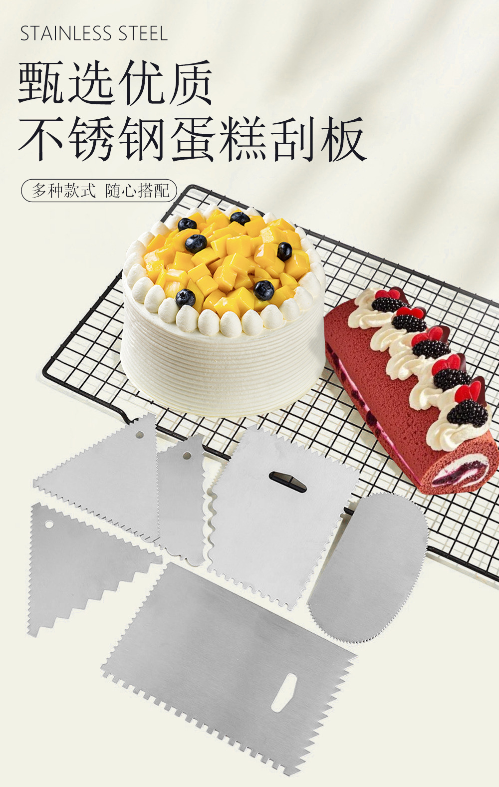 베이킹 도구 케이크 스크레이퍼 스테인레스 스틸 직사각형 삼각형 반원형 주걱 DIY 크림 모양 스크레이퍼스토어 가기